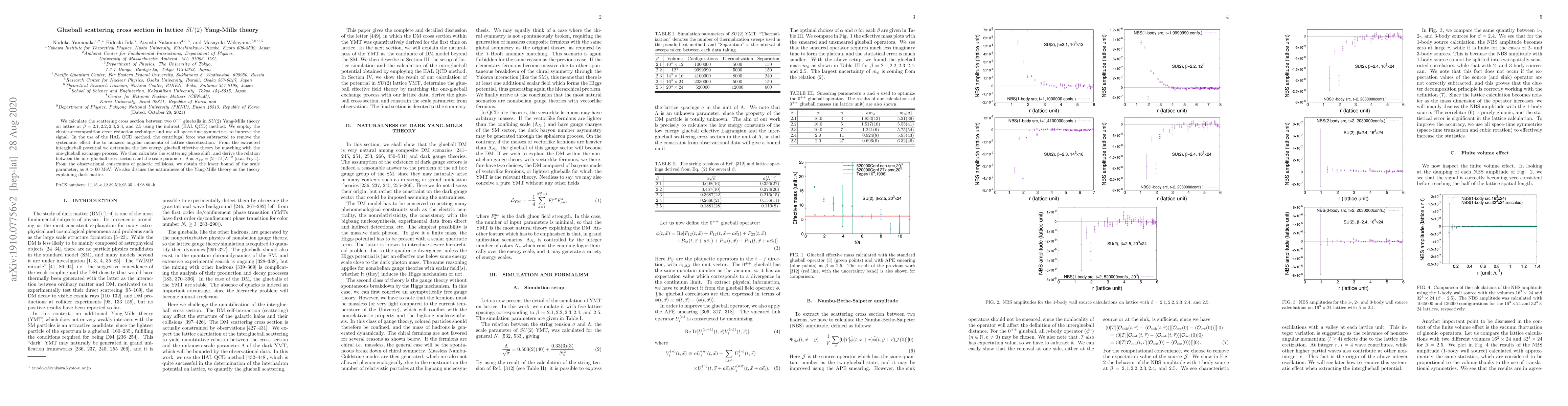 We calculate the scattering cross section between two $0^{++}$ glueballs in $SU(2)$ Yang-Mills theory on lattice at $\beta = 2.1, 2.2, 2.3, 2.4$, and 2.5 using the indirect (HAL QCD) method. We employ the cluster-decomposition error reduction technique and use all space-time symmetries to improve the signal. In the use of the HAL QCD method, the centrifugal force was subtracted to remove the systematic effect due to nonzero angular momenta of lattice discretization. From the extracted interglueball potential we determine the low energy glueball effective theory by matching with the one-glueball exchange process. We then calculate the scattering phase shift, and derive the relation between the interglueball cross section and the scale parameter $\Lambda$ as $\sigma_{\phi \phi} = (2 - 51) \Lambda^{-2}$ (stat.+sys.). From the observational constraints of galactic collisions, we obtain the lower bound of the scale parameter, as $\Lambda > 60$ MeV. We also discuss the naturalness of the Yang-Mills theory as the theory explaining dark matter.