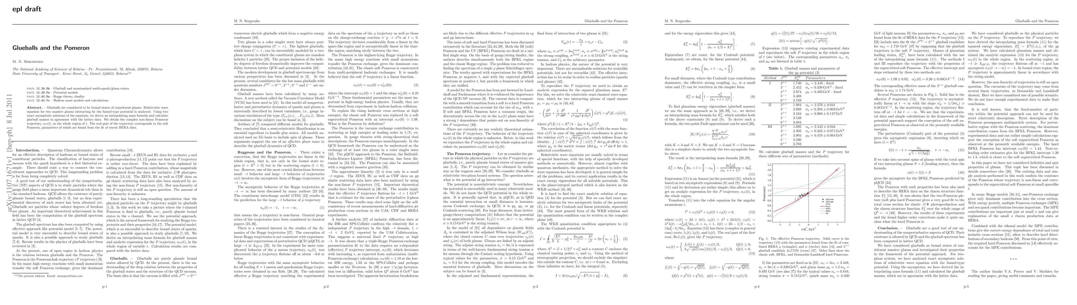 This paper investigates glueballs, bound states of gluons, using a relativistic wave equation for interacting gluons. It derives an interpolating mass formula and calculates glueball masses that match lattice data, and also determines the complex non-linear Pomeron trajectory, $\alpha_P(t)$, fitting its real part to recent HERA data.