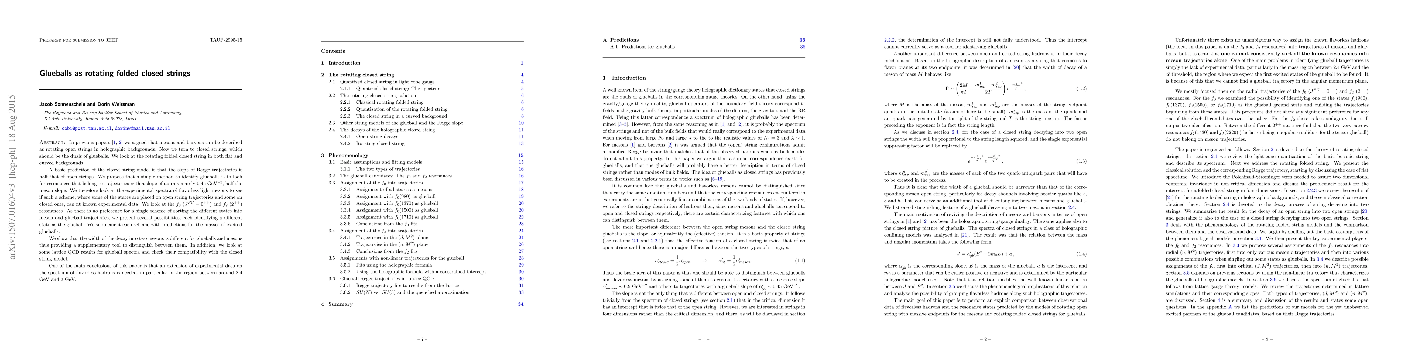 This paper explores the dual nature of glueballs as rotating folded closed strings in both flat and curved backgrounds. It proposes identifying glueballs through resonances with a Regge trajectory slope of 0.45 GeV^-2, half that of open strings, and fits this model to experimental spectra of light mesons, presenting several schemes for classifying states as mesons or glueballs. The study concludes that experimental data on the 2.4-3 GeV spectrum is crucial for validating the closed string model.