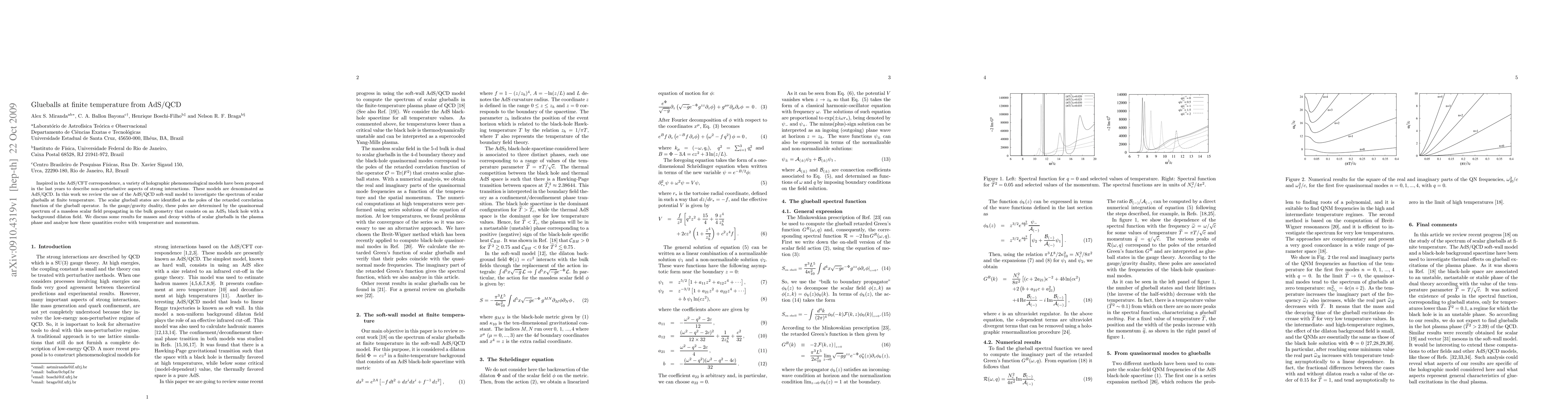 This paper reviews the use of AdS/QCD soft-wall models to investigate the spectrum of scalar glueballs at finite temperatures, identifying these states through the poles of the glueball operator's correlation function. It analyzes how the masses and decay widths of these glueballs evolve with temperature and momentum in the plasma phase.