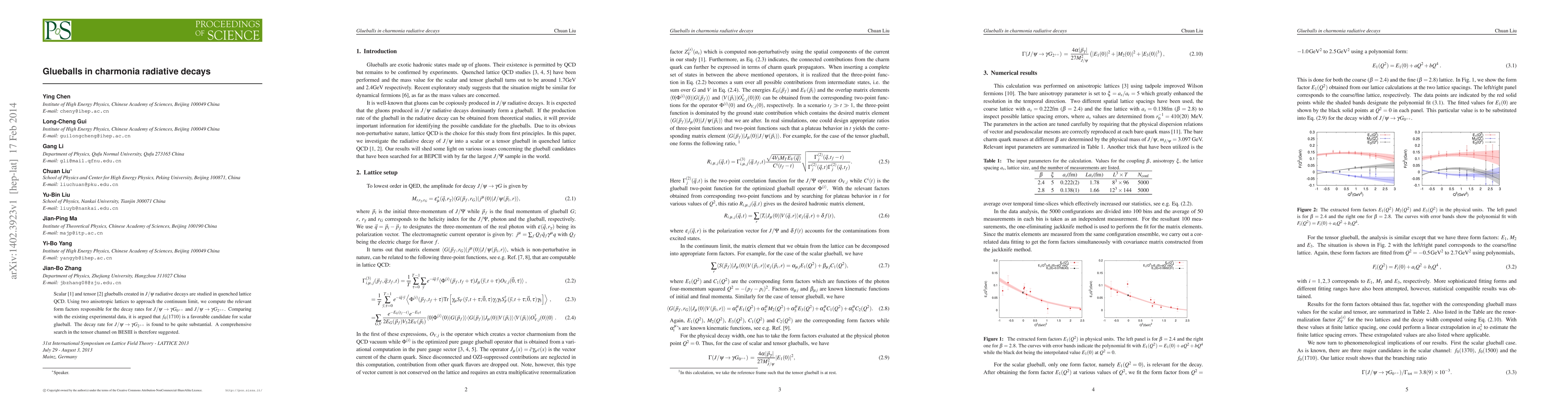 Scalar \cite{scalar_paper} and tensor \cite{tensor_paper} glueballs created in $J/\psi$ radiative decays are studied in quenched lattice QCD. Using two anisotropic lattices to approach the continuum limit, we compute the relevant form factors responsible for the decay rates for $J/\psi\rightarrow\gamma G_{0^{++}}$ and $J/\psi\rightarrow\gamma G_{2^{++}}$. Comparing with the existing experimental data, it is argued that $f_0(1710)$ is a favorable candidate for scalar glueball. The decay rate for $J/\psi\rightarrow\gamma G_{2^{++}}$ is found to be quite substantial. A comprehensive search in the tensor channel on BESIII is therefore suggested.
