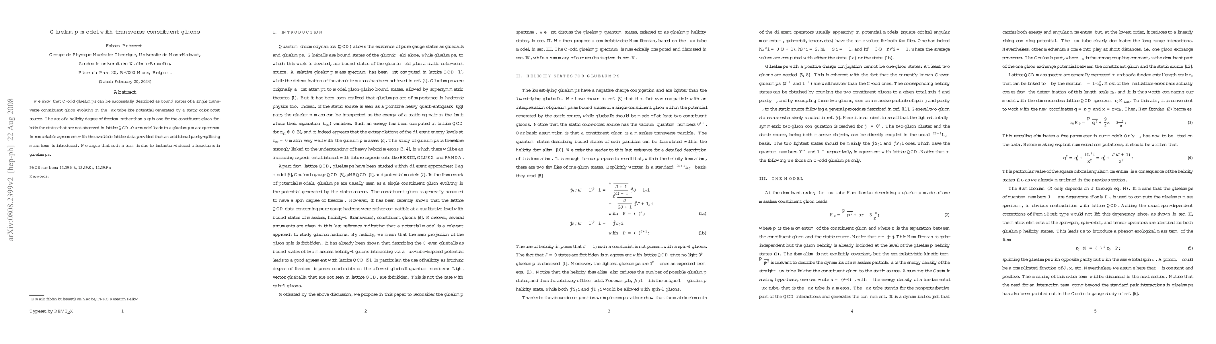 This paper proposes a model describing C-odd gluelumps as bound states of a single transverse constituent gluon in a flux-tube-like potential. The model's agreement with lattice QCD data hinges on using a helicity degree of freedom and introducing a parity-splitting mass term attributed to instanton-induced interactions.