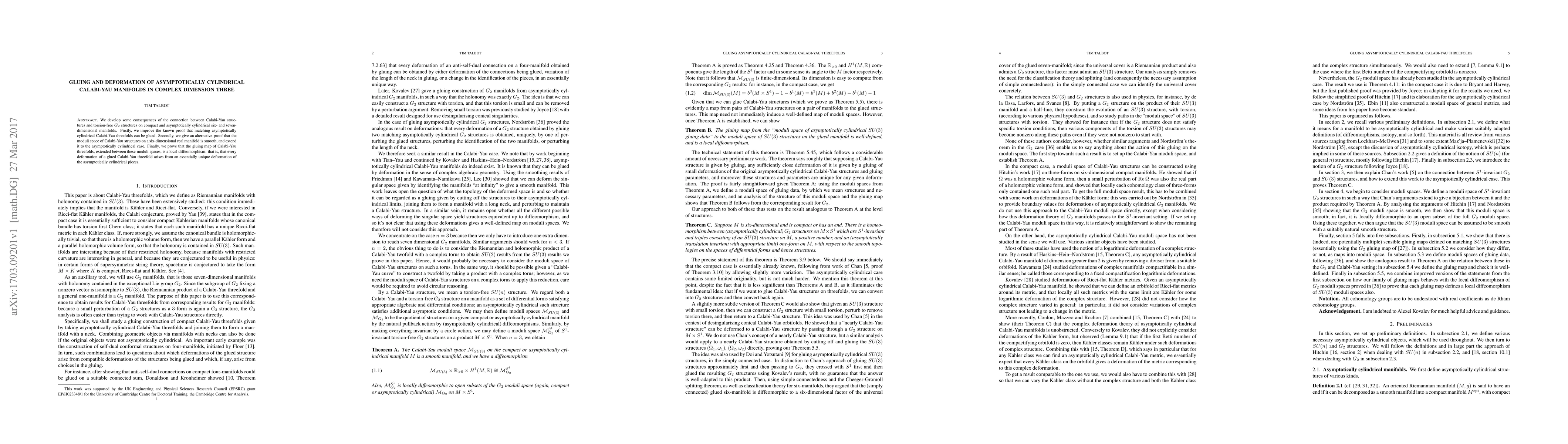 We develop some consequences of the connection between Calabi-Yau structures and torsion-free $G_2$ structures on compact and asymptotically cylindrical six- and seven-dimensional manifolds. Firstly, we improve the known proof that matching asymptotically cylindrical Calabi-Yau threefolds can be glued. Secondly, we give an alternative proof that the moduli space of Calabi-Yau structures on a six-dimensional real manifold is smooth, and extend it to the asymptotically cylindrical case. Finally, we prove that the gluing map of Calabi-Yau threefolds, extended between these moduli spaces, is a local diffeomorphism: that is, that every deformation of a glued Calabi-Yau threefold arises from an essentially unique deformation of the asymptotically cylindrical pieces.