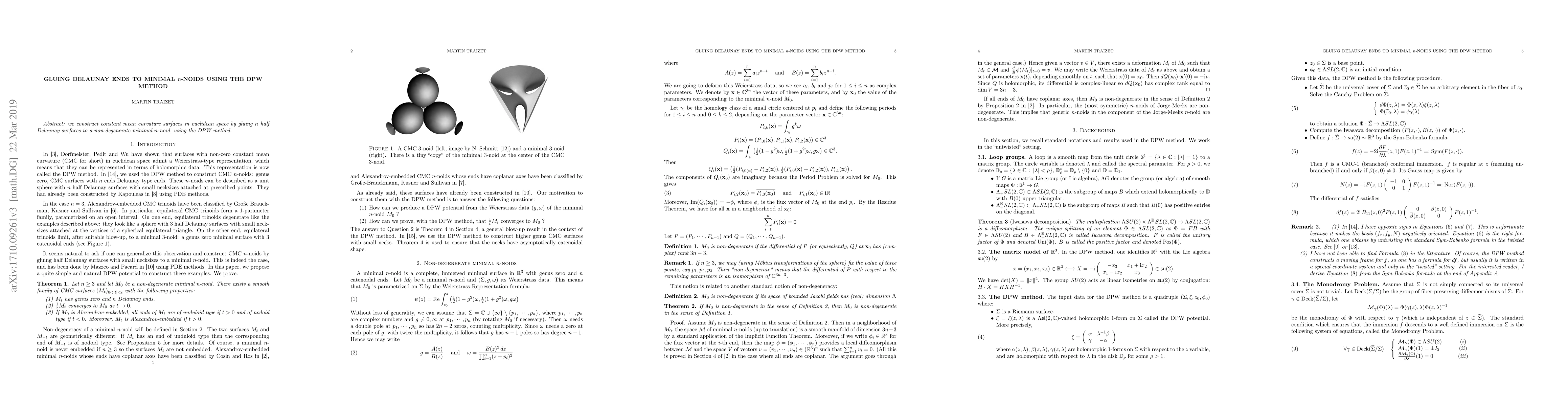 Summary: This paper constructs constant mean curvature surfaces by gluing n half Delaunay surfaces to a minimal n-noid using the DPW method, contributing to the study of geometric surfaces in Euclidean space.