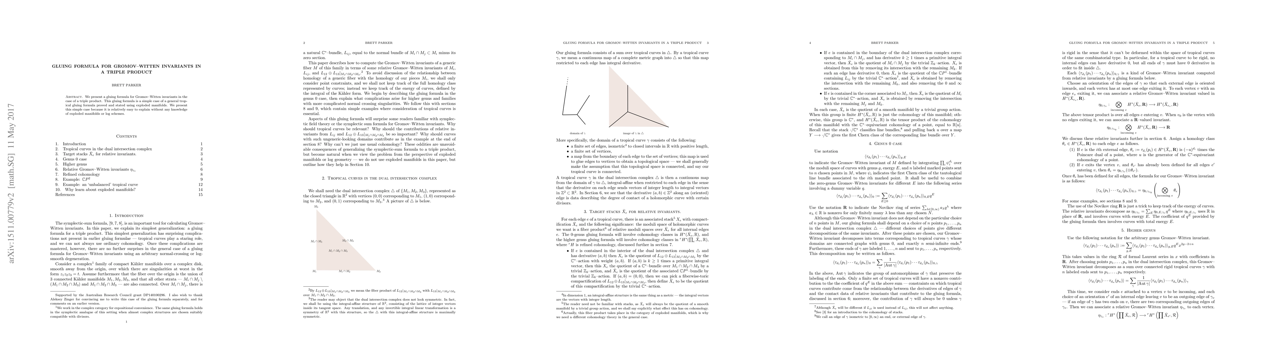 Summary: This paper introduces a straightforward gluing formula for Gromov-Witten invariants in a triple product context, serving as an accessible entry point to a broader theory involving exploded manifolds. The simplicity of this case allows for explanation without requiring prior knowledge of complex mathematical structures.