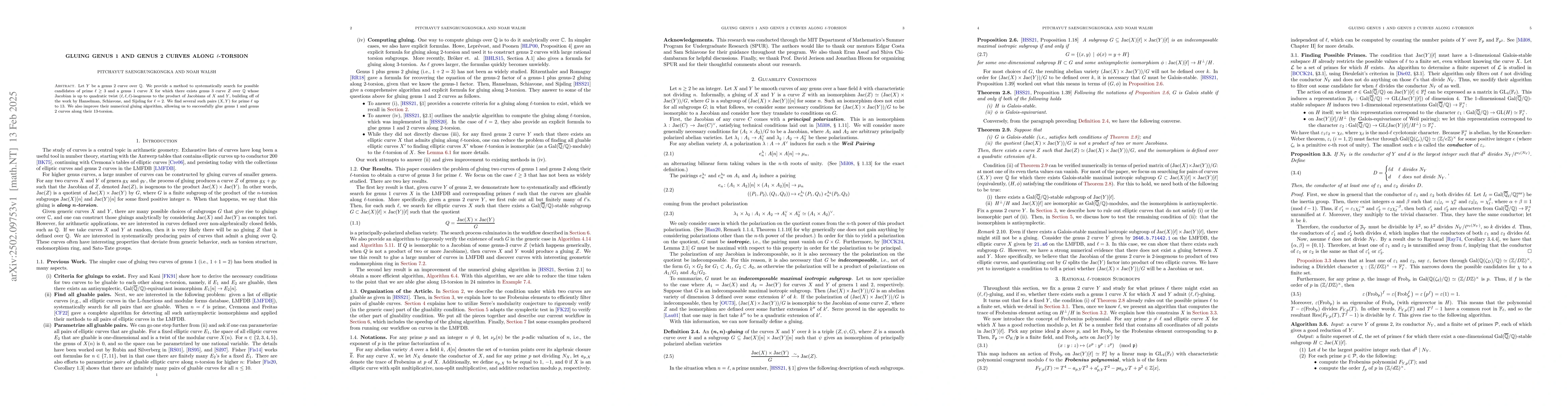 An improved numerical gluing algorithm for genus 1 and genus 2 curves along $\ell$-torsion, specifically demonstrated for $\ell = 13$.