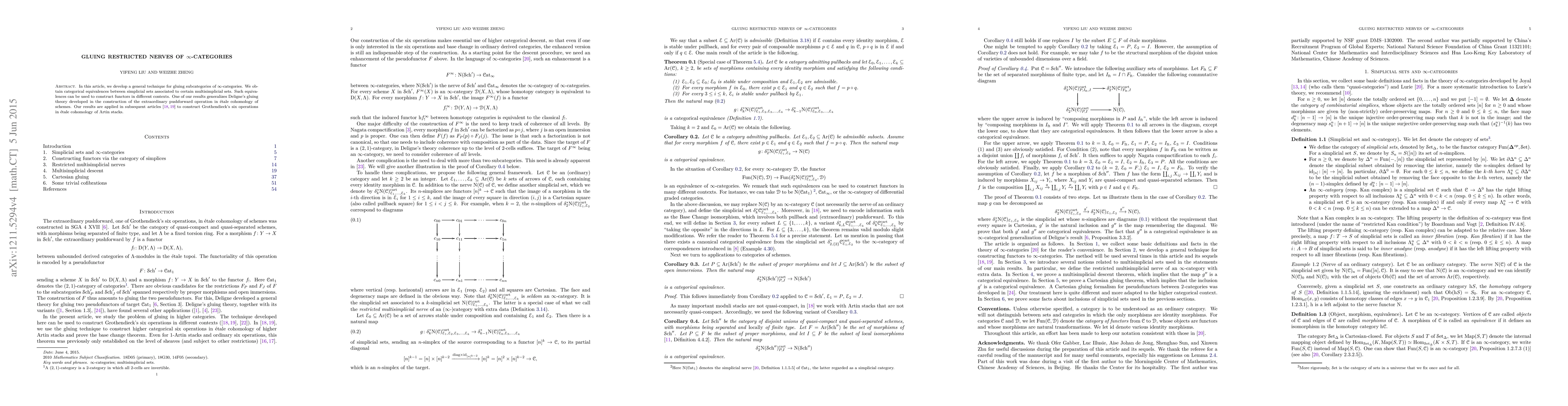 This paper introduces a method for gluing subcategories of $\infty$-categories, establishing categorical equivalences between simplicial sets derived from multisimplicial sets, which generalizes Deligne's gluing theory for \'etale cohomology. These techniques are later applied to construct Grothendieck's six operations in \'etale cohomology of Artin stacks.