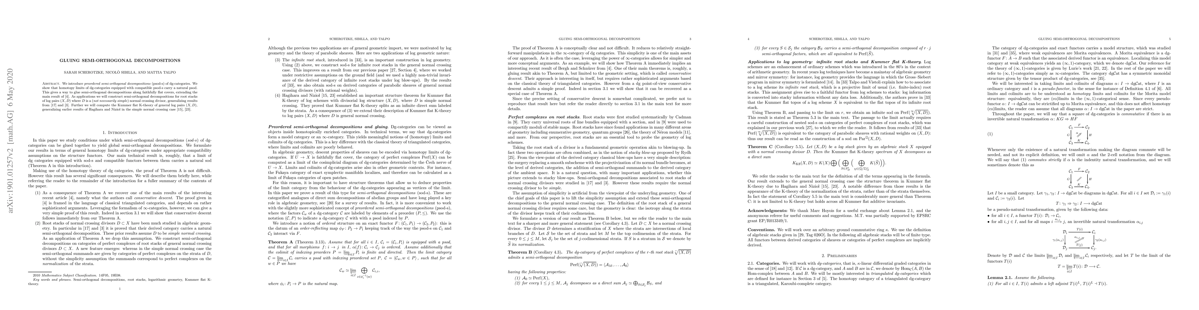 This paper introduces preordered semi-orthogonal decompositions of dg-categories and demonstrates that homotopy limits of compatible ones carry a natural psod, allowing for the gluing of semi-orthogonal decompositions along faithfully-flat covers. Applications include constructing decompositions for root stacks of log pairs and computing Kummer flat K-theory for general log pairs.
