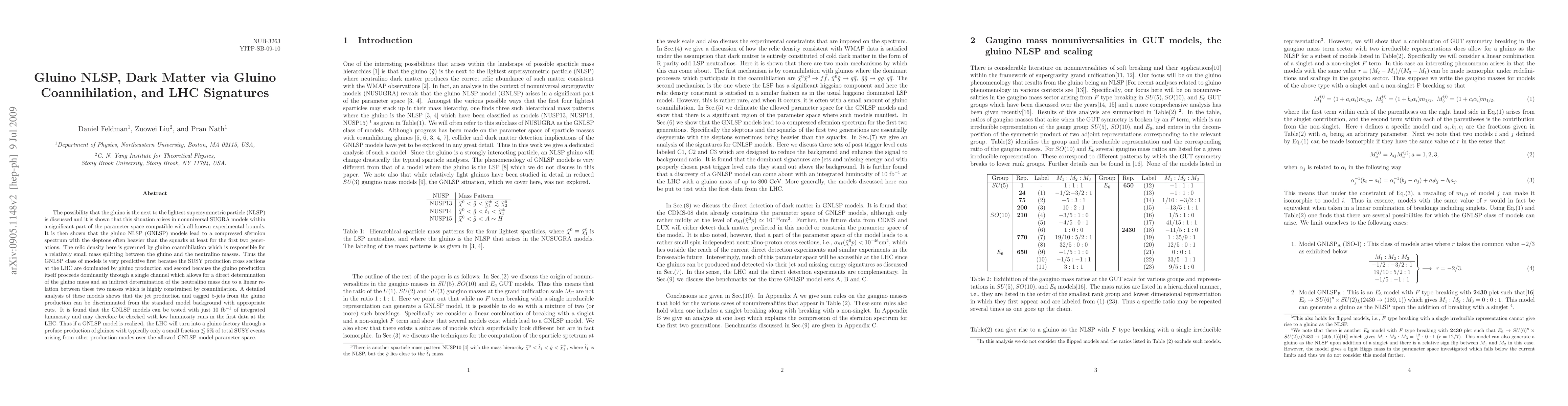 The possibility that the gluino is the next to the lightest supersymmetric particle (NLSP) is discussed and it is shown that this situation arises in nonuniversal SUGRA models within a significant part of the parameter space compatible with all known experimental bounds. It is then shown that the gluino NLSP (GNLSP) models lead to a compressed sfermion spectrum with the sleptons often heavier than the squarks at least for the first two generations. The relic density here is governed by gluino coannihilation which is responsible for a relatively small mass splitting between the gluino and the neutralino masses. Thus the GNLSP class of models is very predictive first because the SUSY production cross sections at the LHC are dominated by gluino production and second because the gluino production itself proceeds dominantly through a single channel which allows for a direct determination of the gluino mass and an indirect determination of the neutralino mass due to a linear relation between these two masses which is highly constrained by coannihilation. A detailed analysis of these models shows that the jet production and tagged b-jets from the gluino production can be discriminated from the standard model background with appropriate cuts. It is found that the GNLSP models can be tested with just 10 fb$^{-1}$ of integrated luminosity and may therefore be checked with low luminosity runs in the first data at the LHC. Thus if a GNLSP model is realized, the LHC will turn into a gluino factory through a profuse production of gluinos with typically only a small fraction $\lesssim 5%$ of total SUSY events arising from other production modes over the allowed GNLSP model parameter space.