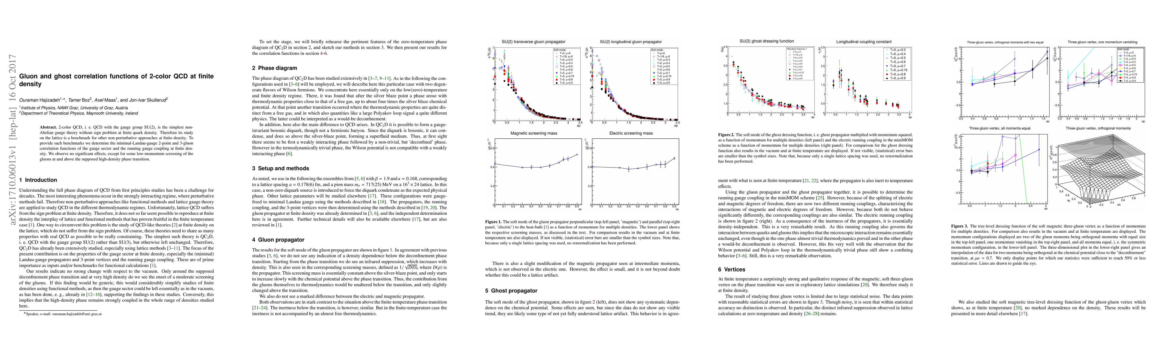 2-color QCD, i. e. QCD with the gauge group SU(2), is the simplest non-Abelian gauge theory without sign problem at finite quark density. Therefore its study on the lattice is a benchmark for other non-perturbative approaches at finite density. To provide such benchmarks we determine the minimal-Landau-gauge 2-point and 3-gluon correlation functions of the gauge sector and the running gauge coupling at finite density. We observe no significant effects, except for some low-momentum screening of the gluons at and above the supposed high-density phase transition.