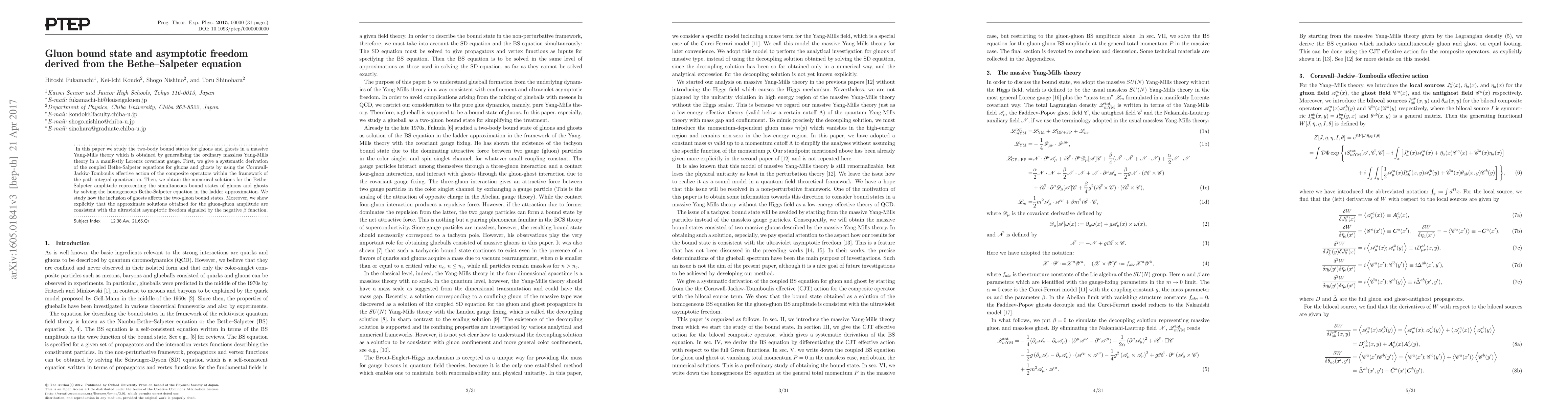 In this paper we study the two-body bound states for gluons and ghosts in a massive Yang-Mills theory which is obtained by generalizing the ordinary massless Yang-Mills theory in a manifestly Lorentz covariant gauge. First, we give a systematic derivation of the coupled Bethe-Salpeter equations for gluons and ghosts by using the Cornwall-Jackiw-Tomboulis effective action of the composite operators within the framework of the path integral quantization. Then, we obtain the numerical solutions for the Bethe-Salpeter amplitude representing the simultaneous bound states of gluons and ghosts by solving the homogeneous Bethe-Salpeter equation in the ladder approximation. We study how the inclusion of ghosts affects the two-gluon bound states in the cases of the standing and running gauge coupling constant. Moreover, we show explicitly that the approximate solutions obtained for the gluon-gluon amplitude are consistent with the ultraviolet asymptotic freedom signaled by the negative $\beta$ function.
