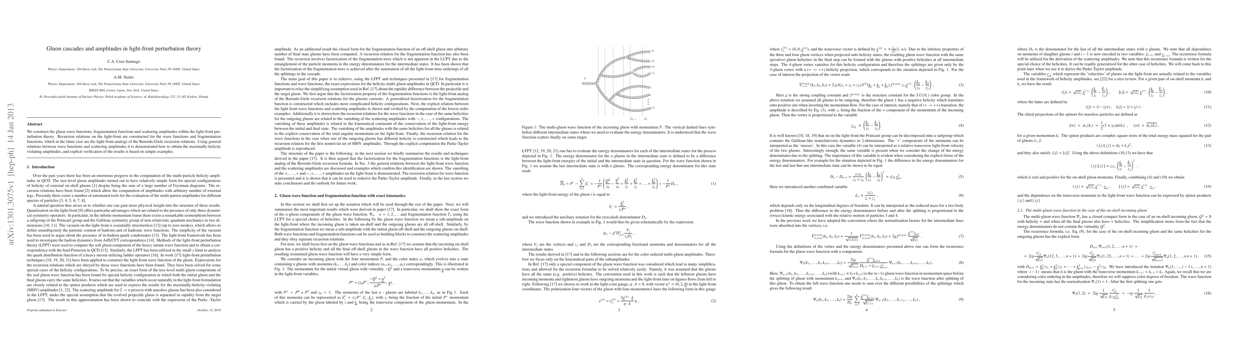 This paper constructs gluon wave functions, fragmentation functions, and scattering amplitudes using light-front perturbation theory, with recursion relations developed for these functions. It demonstrates how to obtain maximally-helicity violating amplitudes and verifies the results through simple examples.