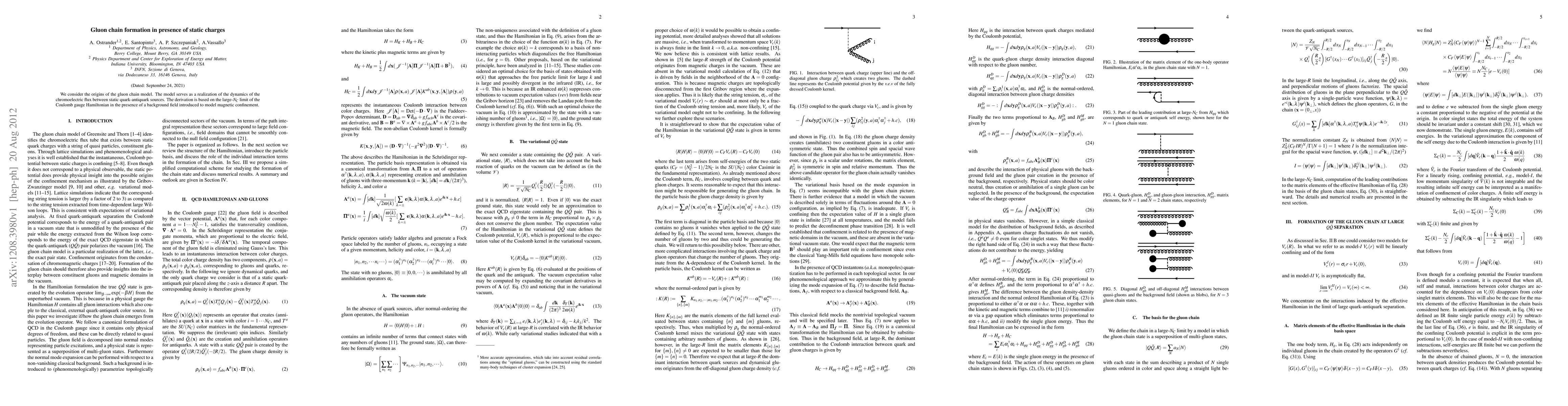We consider the origins of the gluon chain model. The model serves as a realization of the dynamics of the chromoelectric flux between static quark-antiquark sources. The derivation is based on the large-N_C limit of the Coulomb gauge Hamiltonian in the presence of a background field introduced to model magnetic confinement.