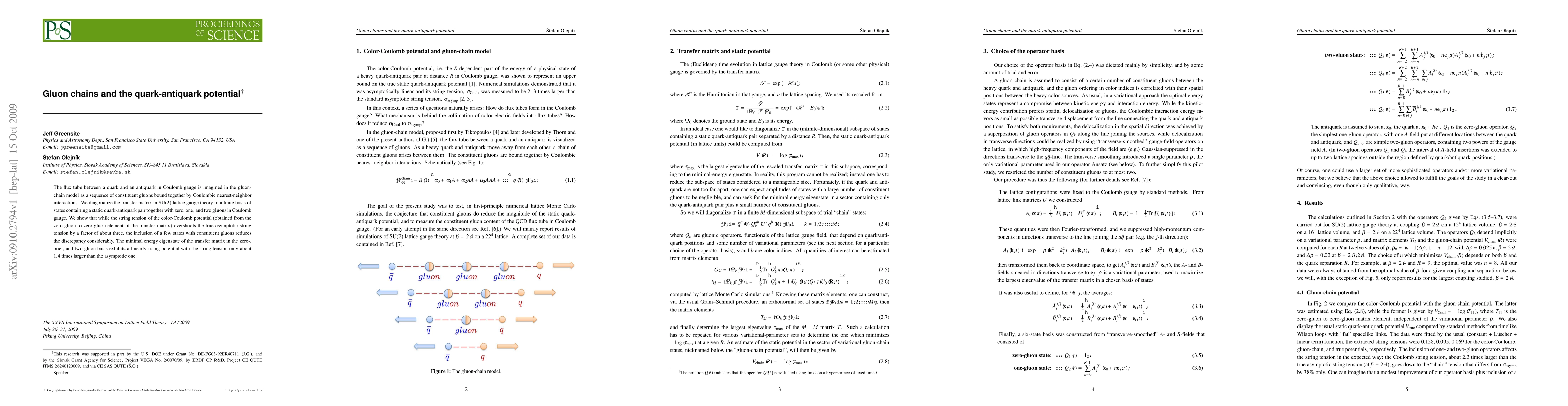 This paper investigates the quark-antiquark potential using the gluon-chain model, showing that the inclusion of constituent gluons in the analysis significantly reduces the overestimation of the string tension compared to the true asymptotic value. The minimal energy eigenstate reveals a linearly rising potential with a string tension that is only about 1.4 times larger than the true asymptotic value.