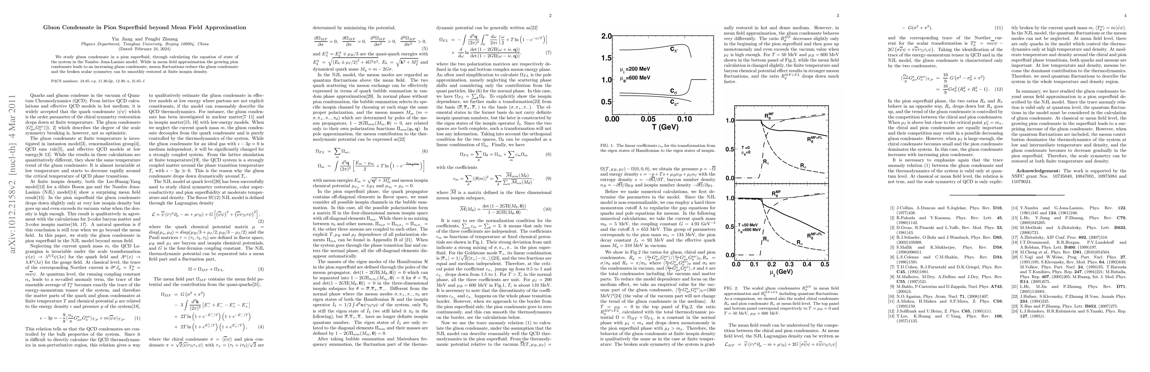 This paper investigates the gluon condensate in pion superfluid beyond mean field approximation using the Nambu-Jona-Lasinio model, revealing that meson fluctuations decrease the gluon condensate and allow for the restoration of the broken scalar symmetry at finite isospin density.