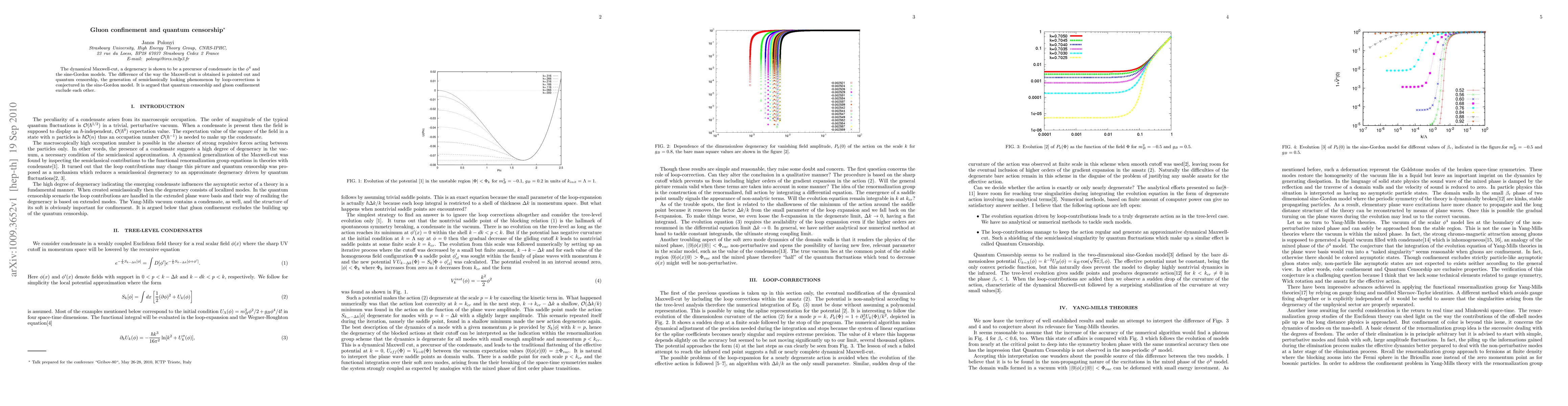The dynamical Maxwell-cut, a degeneracy is shown to be a precursor of condensate in the phi4 and the sine-Gordon models. The difference of the way the Maxwell-cut is obtained is pointed out and quantum censorship, the generation of semiclassically looking phenomenon by loop-corrections is conjectured in the sine-Gordon model. It is argued that quantum censorship and gluon confinement exclude each other.