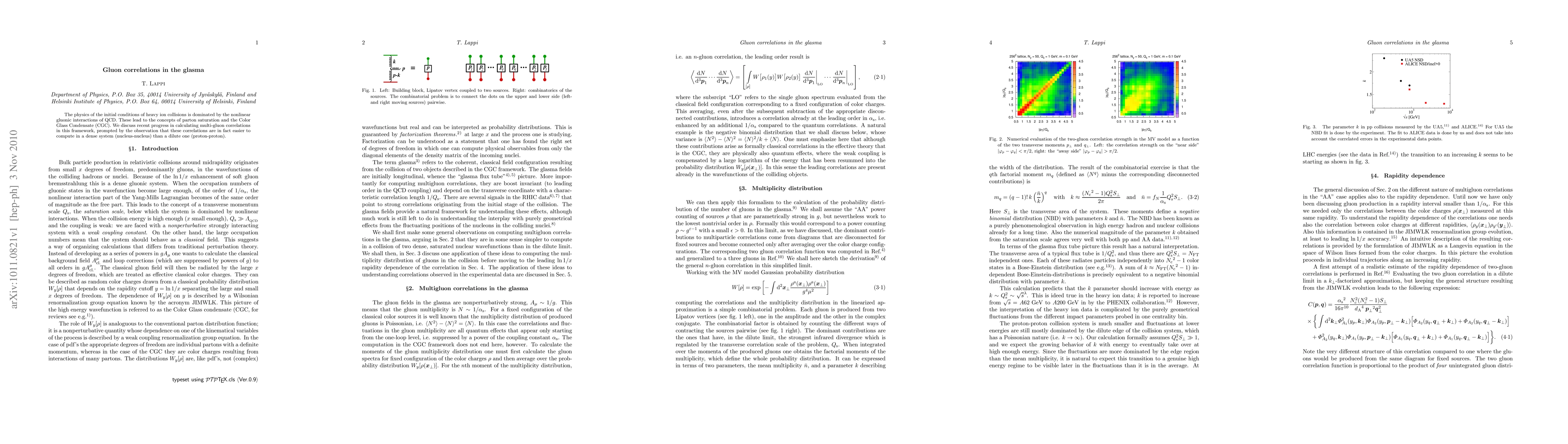 The physics of the initial conditions of heavy ion collisions is dominated by the nonlinear gluonic interactions of QCD. These lead to the concepts of parton saturation and the Color Glass Condensate (CGC). We discuss recent progress in calculating multi-gluon correlations in this framework, prompted by the observation that these correlations are in fact easier to compute in a dense system (nucleus-nucleus) than a dilute one (proton-proton).
