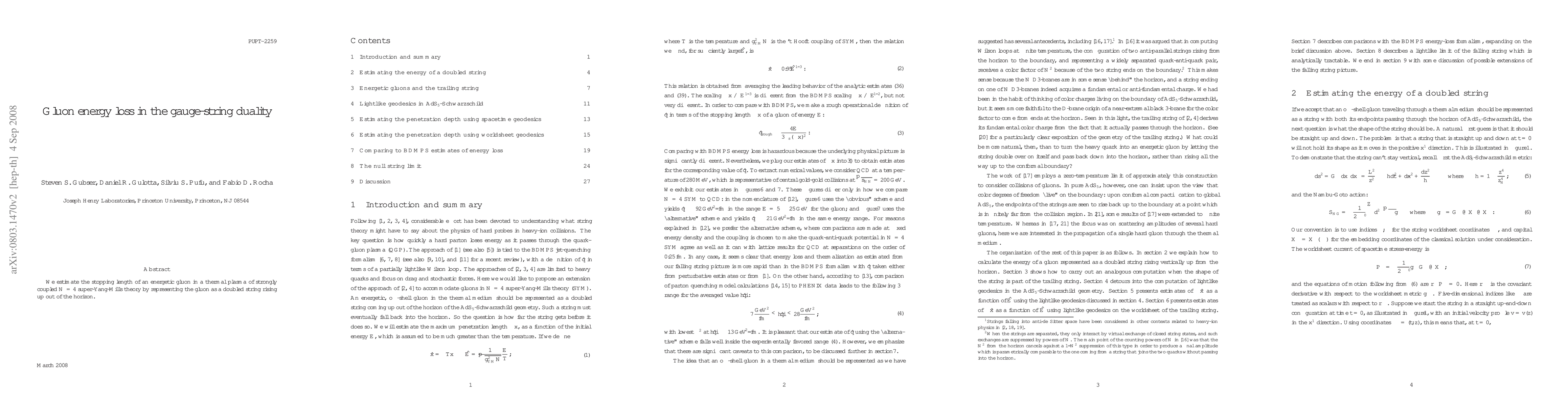 Summary: This paper estimates the stopping length of an energetic gluon in a thermal plasma using the gauge-string duality, modeling the gluon as a doubled string rising from the horizon in N=4 super-Yang-Mills theory. The study provides insights into gluon energy loss mechanisms in strongly coupled plasmas.