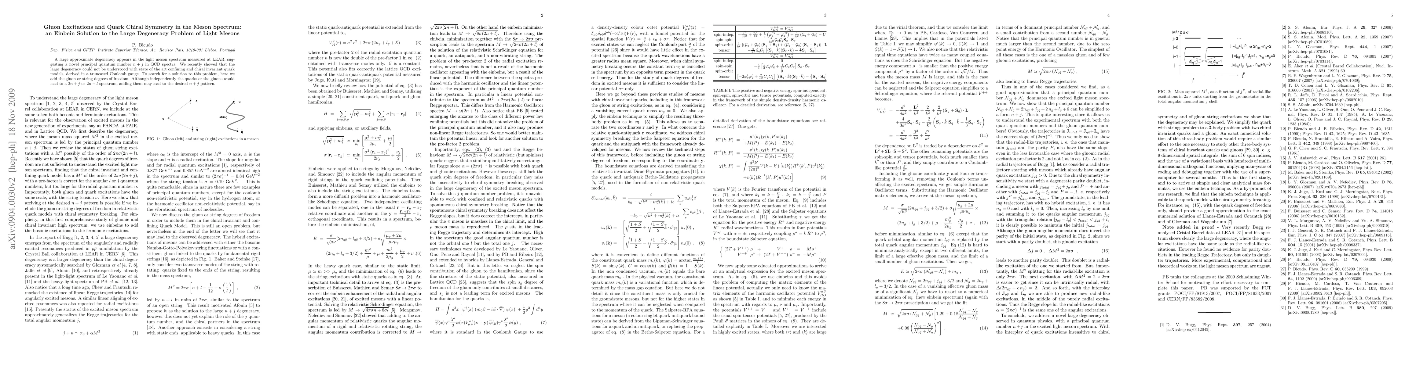 A large approximate degeneracy of the excited hadron spectra, appears in the light meson spectra measured at LEAR, suggesting a novel principal quantum number n+j in QCD spectra. We recently showed that the large degeneracy could not be understood with state of the art confining and chiral invariant quark models, derived in a truncated Coulomb gauge. To search for a solution to this problem, here we add the gluon or string degrees of freedom. Although independently the quarks or the gluons would lead to a 2 n +j or 2 n +l spectrum, adding them may lead to the desired n+j pattern.