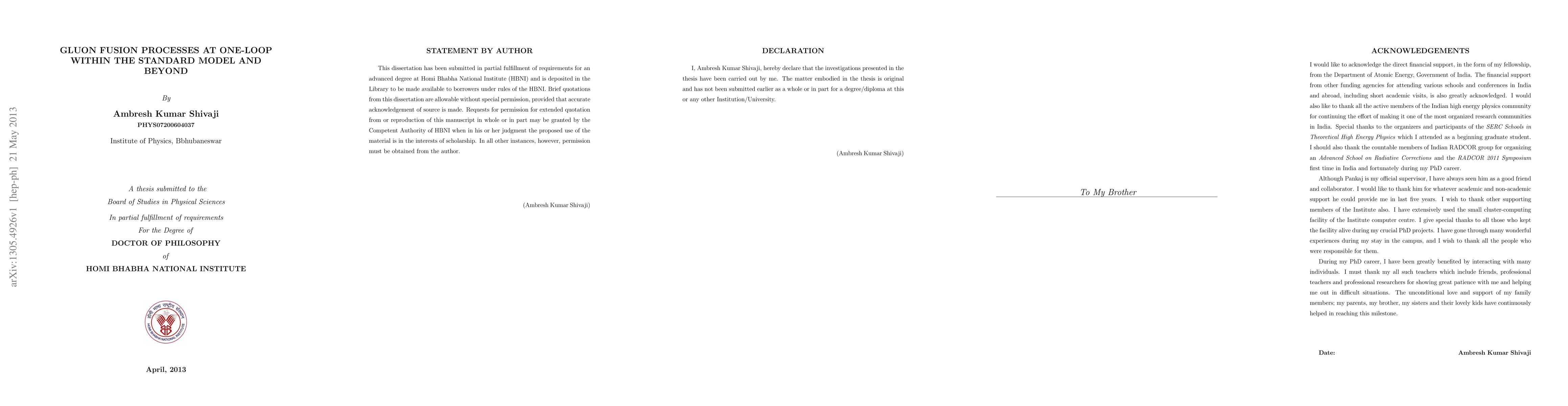 This research investigates gluon fusion processes at one-loop within the Standard Model and beyond, focusing on the production of electroweak vector boson pairs in association with jets. It also explores the ADD model for extra-dimensional physics, examining the direct production of Kaluza-Klein gravitons in gluon fusion processes.