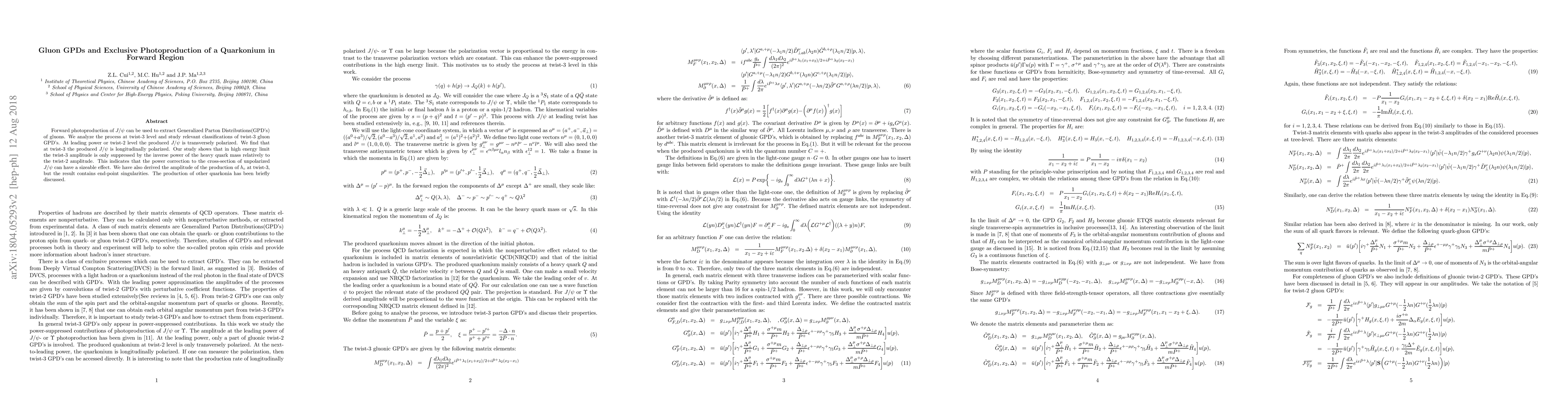 Forward photoproduction of $J/\psi$ can be used to extract Generalized Parton Distributions(GPD's) of gluons. We analyze the process at twist-3 level and study relevant classifications of twist-3 gluon GPD's. At leading power or twist-2 level the produced $J/\psi$ is transversely polarized. We find that at twist-3 the produced $J/\psi$ is longitudinally polarized. Our study shows that in high energy limit the twist-3 amplitude is only suppressed by the inverse power of the heavy quark mass relatively to the twist-2 amplitude. This indicates that the power correction to the cross-section of unpolarized $J/\psi$ can have a sizeable effect. We have also derived the amplitude of the production of $h_c$ at twist-3, but the result contains end-point singularities. The production of other quarkonia has been briefly discussed.