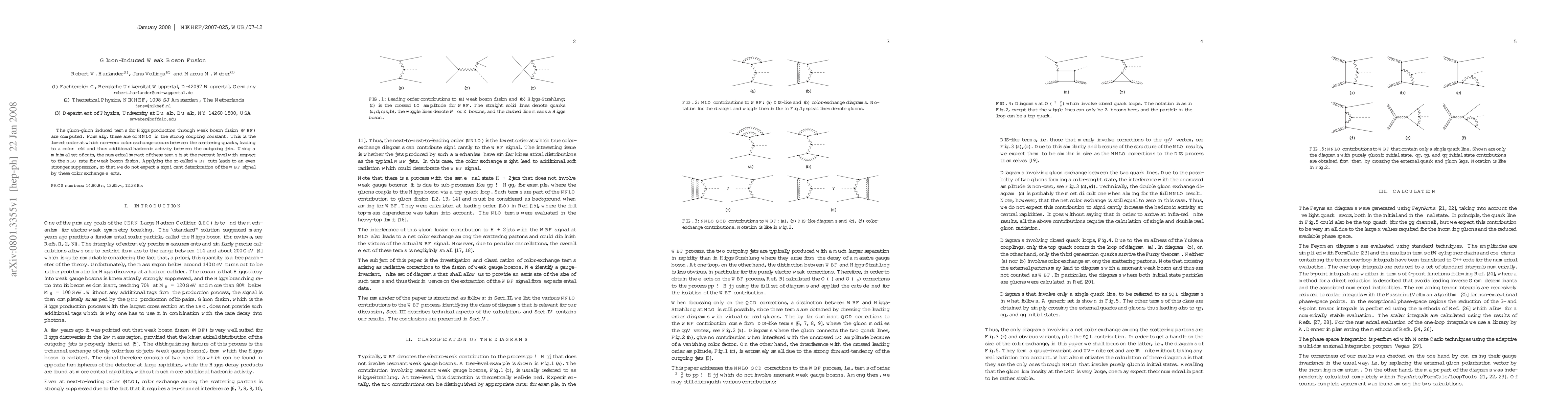 This paper computes gluon-induced terms for Higgs production via weak boson fusion at NNLO, revealing non-zero color exchange effects. Despite their numerical impact at the percent level, the application of WBF cuts strongly suppresses these effects, ensuring minimal deterioration of the WBF signal.