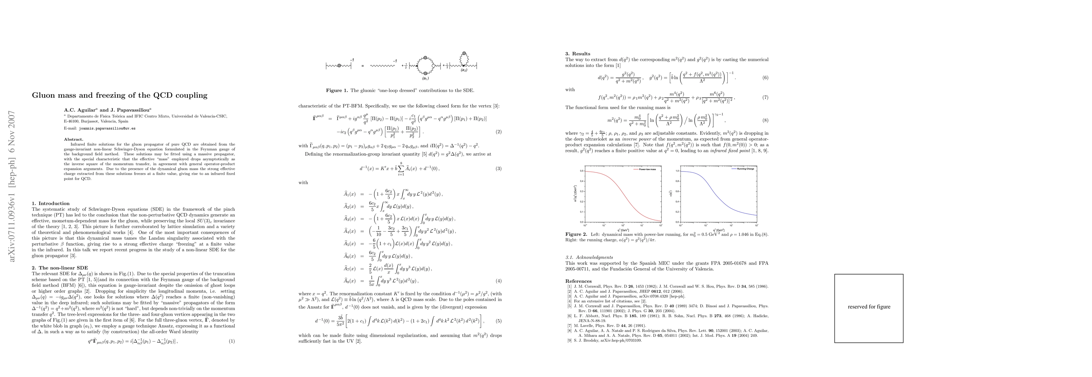 Infrared finite solutions for the gluon propagator of pure QCD are obtained from the gauge-invariant non-linear Schwinger-Dyson equation formulated in the Feynman gauge of the background field method. These solutions may be fitted using a massive propagator, with the special characteristic that the effective mass employed drops asymptotically as the inverse square of the momentum transfer, in agreement with general operator-product expansion arguments. Due to the presence of the dynamical gluon mass the strong effective charge extracted from these solutions freezes at a finite value, giving rise to an infrared fixed point for QCD.