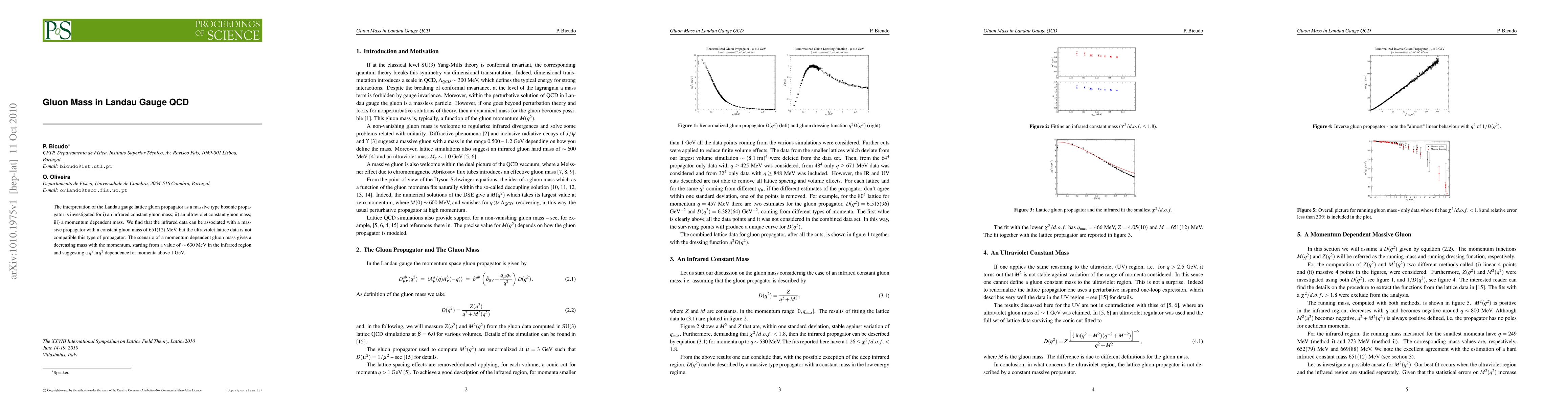 The study of the Landau gauge gluon propagator reveals a constant infrared gluon mass of 651(12) MeV, while a momentum-dependent mass model suggests a decreasing mass with momentum, indicating a $q^2 \ln q^2$ dependence for higher momenta. Ultraviolet data does not support a constant mass interpretation.