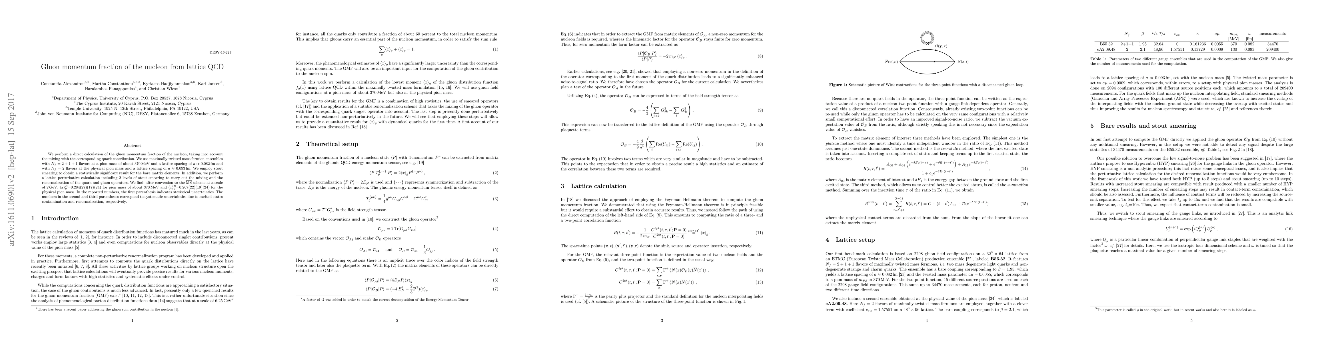 This study uses lattice QCD simulations with twisted mass fermions to calculate the gluon momentum fraction of the nucleon. Results are obtained at two pion masses: approximately 370 MeV and the physical pion mass. Stout smearing is applied to improve the bare matrix elements, and lattice perturbation theory is used for renormalization. The findings reveal that the gluon momentum fraction is approximately 0.284(23)(23) for a pion mass of 370 MeV and 0.283(23)(15) at the physical pion mass, both in the $overline{mathrm{MS}}$ scheme at 2 GeV.