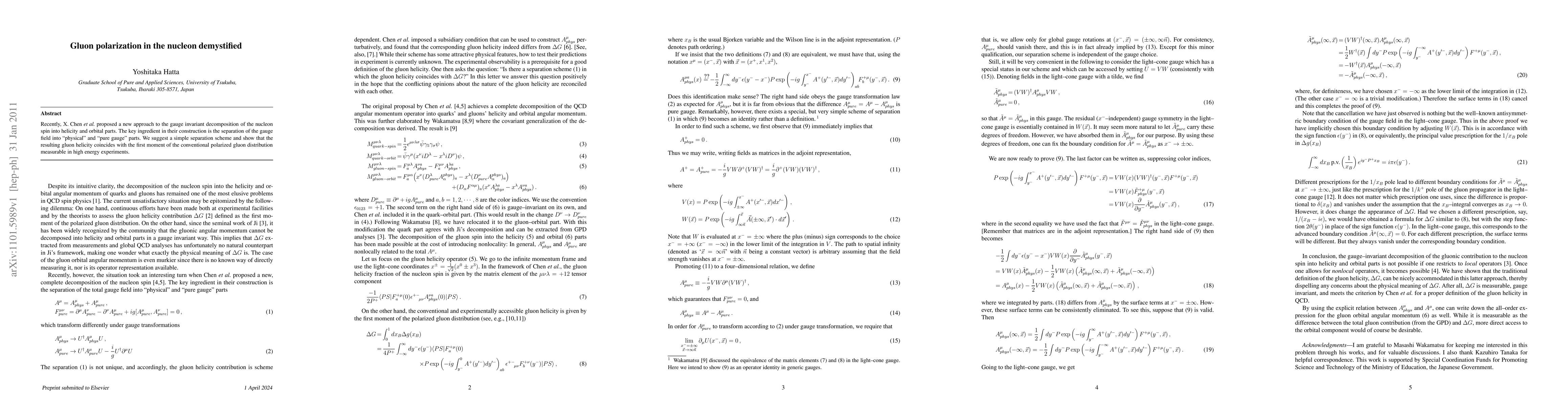 Recently, X. Chen et al. proposed a new approach to the gauge invariant decomposition of the nucleon spin into helicity and orbital parts. The key ingredient in their construction is the separation of the gauge field into `physical' and `pure gauge' parts. We suggest a simple separation scheme and show that the resulting gluon helicity coincides with the first moment of the conventional polarized gluon distribution measurable in high energy experiments.