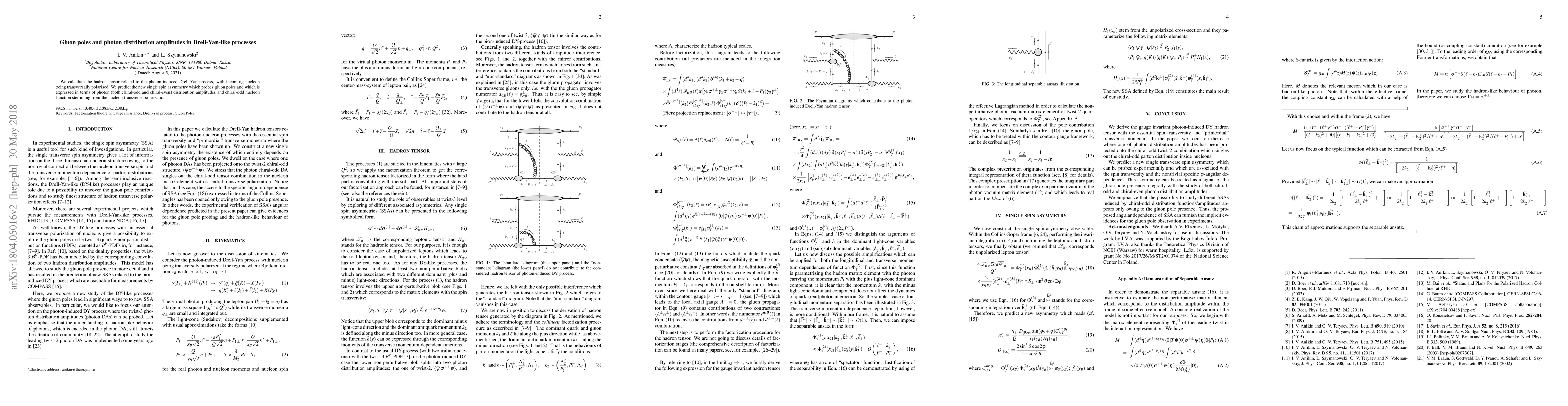 This paper calculates the hadron tensor for the photon-induced Drell-Yan process with a transversally polarized nucleon, predicting a new single spin asymmetry that probes gluon poles, expressed in terms of photon distribution amplitudes and chiral-odd nucleon functions.