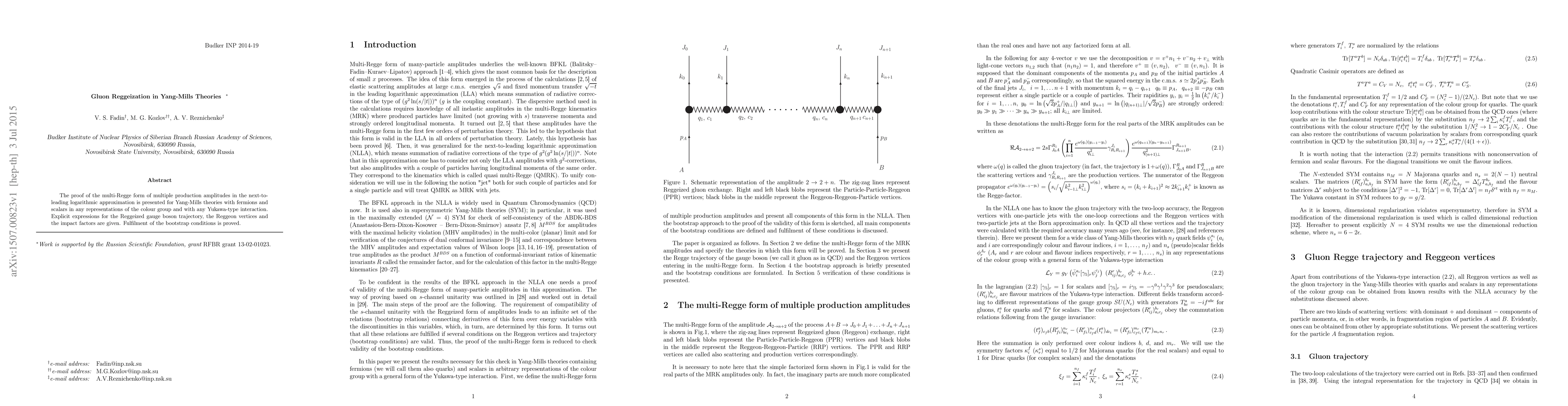 The proof of the multi-Regge form of multiple production amplitudes in the next-to-leading logarithmic approximation is presented for Yang-Mills theories with fermions and scalars in any representations of the colour group and with any Yukawa-type interaction. Explicit expressions for the Reggeized gauge boson trajectory, the Reggeon vertices and the impact factors are given. Fulfilment of the bootstrap conditions is proved.