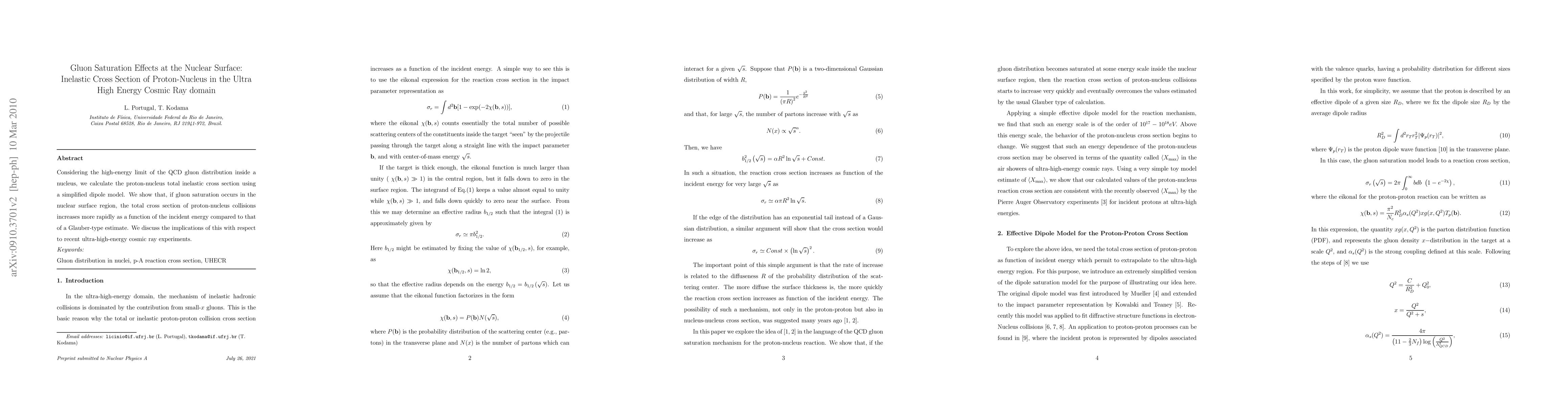Considering the high-energy limit of the QCD gluon distribution inside a nucleus, we calculate the proton-nucleus total inelastic cross section using a simplified dipole model. We show that, if gluon saturation occurs in the nuclear surface region, the total cross section of proton-nucleus collisions increases more rapidly as a function of the incident energy compared to that of a Glauber-type estimate. We discuss the implications of this with respect to recent ultra-high-energy cosmic ray experiments.