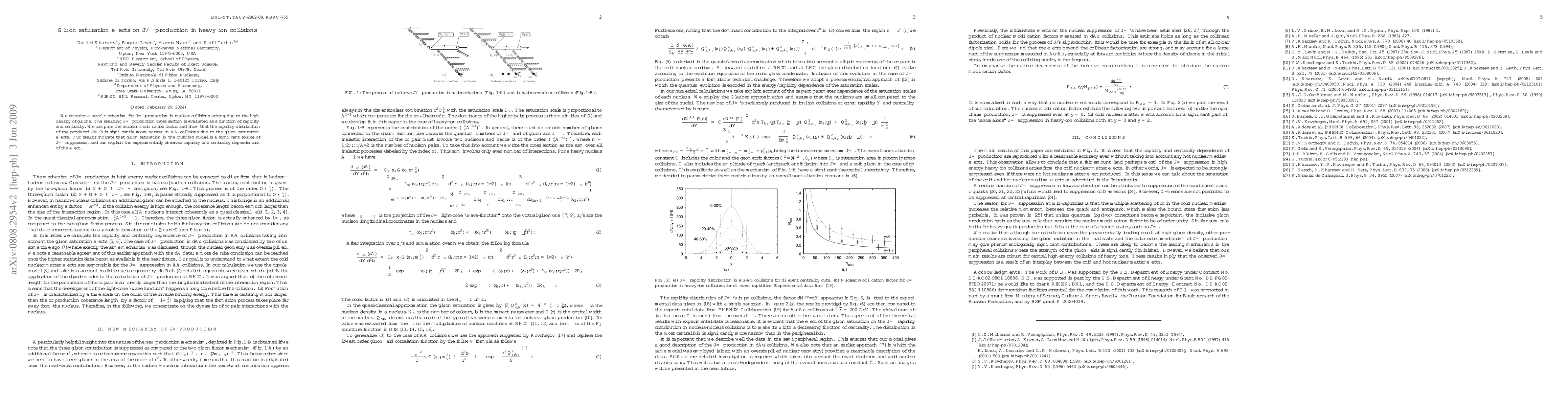 This study investigates J/Psi production in heavy ion collisions due to gluon saturation, calculating the production cross section and nuclear modification factor. Results show a significantly narrower rapidity distribution in AA collisions, indicating gluon saturation as a key factor in J/Psi suppression distinct from quark-gluon plasma effects.