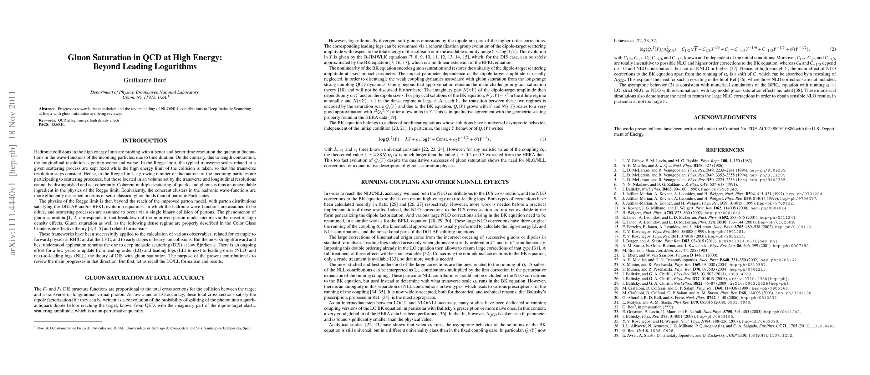 Progresses towards the calculation and the understanding of NLO/NLL contributions to Deep Inelastic Scattering at low x with gluon saturation are being reviewed.