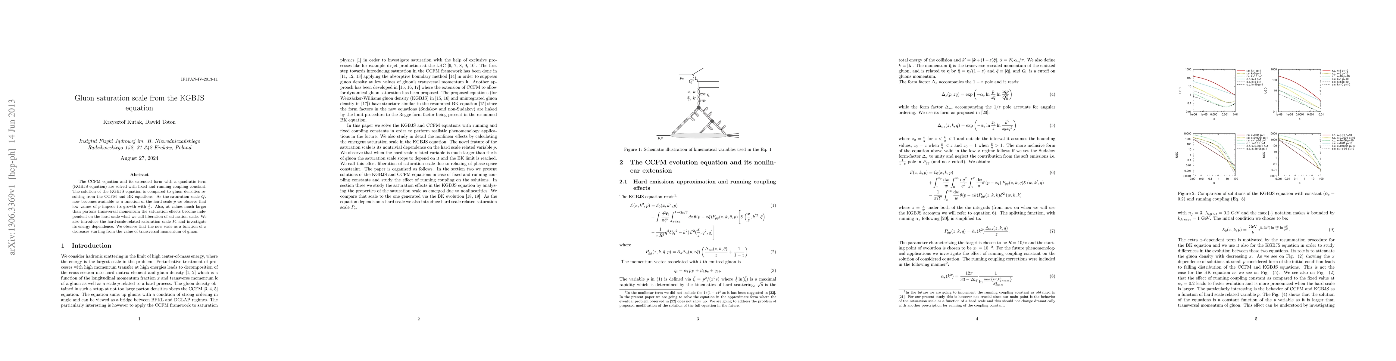 The CCFM equation and its extended form with a quadratic term (KGBJS equation) are solved with fixed and running coupling constant. The solution of the KGBJS equation is compared to gluon densities resulting from the CCFM and BK equations. As the saturation scale $Q_s$ now becomes available as a function of the hard scale $p$ we observe that low values of $p$ impede its growth with $\frac 1 x$. Also, at values much larger than partons transversal momentum the saturation effects become independent on the hard scale what we call liberation of saturation scale. We also introduce the hard-scale-related saturation scale $P_s$ and investigate its energy dependence. We observe that the new scale as a function of $x$ decreases starting from the value of transversal momentum of gluon.