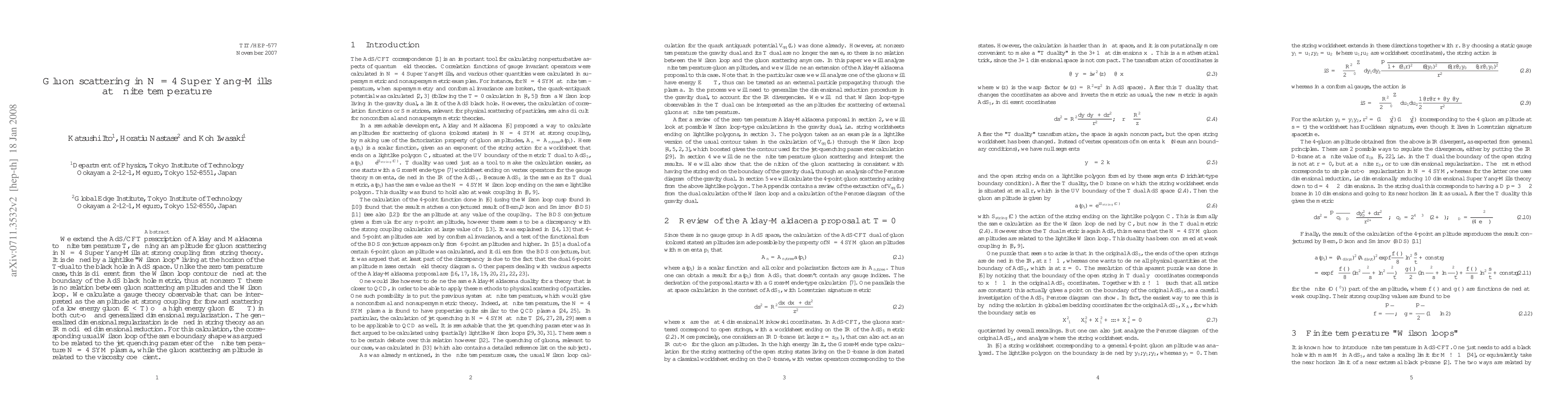 This research extends the AdS/CFT correspondence to finite temperatures, defining gluon scattering amplitudes in ${\cal N}=4$ Super Yang-Mills at strong coupling via string theory. Unlike at zero temperature, the gluon scattering amplitudes at finite temperature do not correlate with the Wilson loop, and calculations use generalized dimensional regularization to link scattering amplitudes to the viscosity coefficient and jet quenching parameter of the ${\cal N}=4$ SYM plasma.