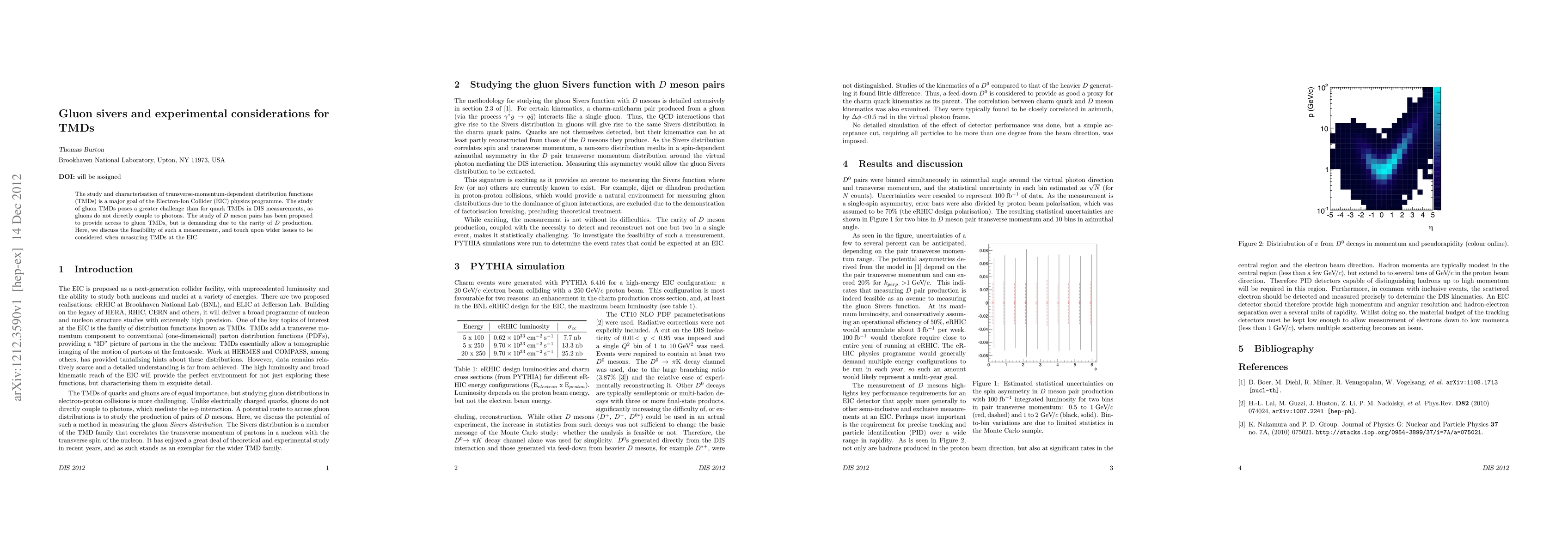 The study and characterisation of transverse-momentum-dependent distribution functions (TMDs) is a major goal of the Electron-Ion Collider (EIC) physics programme. The study of gluon TMDs poses a greater challenge than for quark TMDs in DIS measurements, as gluons do not directly couple to photons. The study of D meson pairs has been proposed to provide access to gluon TMDs, but is demanding due to the rarity of D production. Here, we discuss the feasibility of such a measurement, and touch upon wider issues to be considered when measuring TMDs at the EIC.