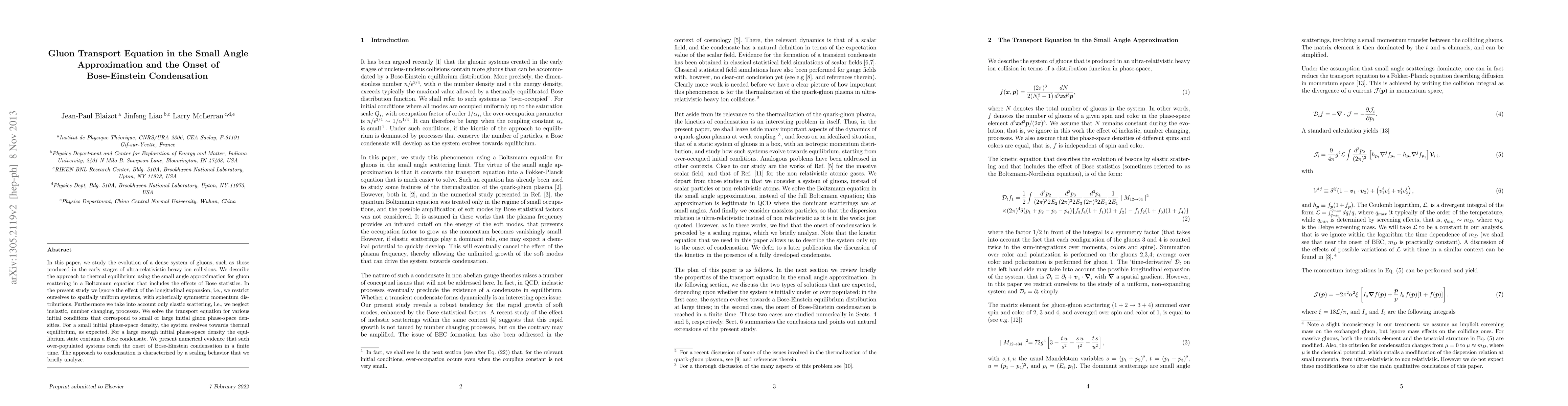 This paper investigates the evolution of dense gluon systems using the small angle approximation in a Boltzmann equation, focusing on thermal equilibrium and Bose-Einstein condensation. It reveals that systems with high initial gluon densities develop Bose condensates over time, characterized by a scaling behavior.