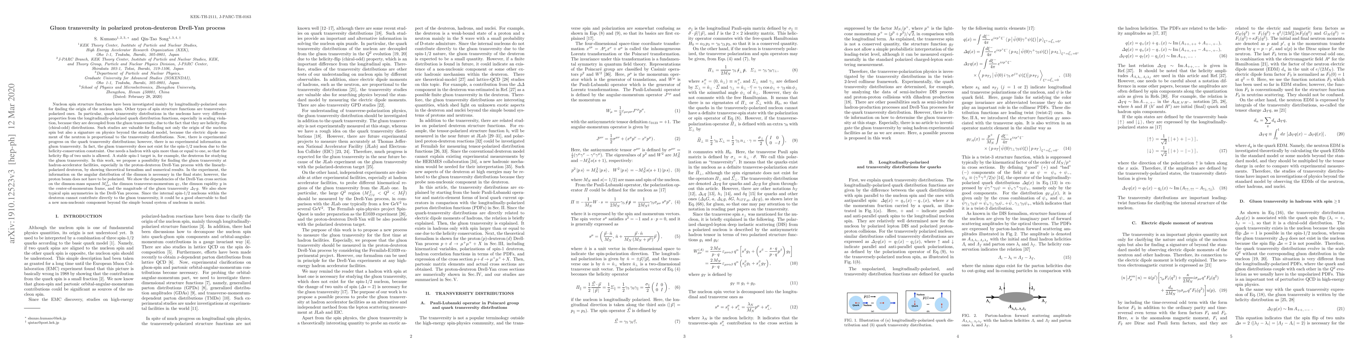 Nucleon spin structure functions have been investigated mainly by longitudinally-polarized ones for finding the origin of the nucleon spin. Other types of spin structure functions are transversely-polarized ones. In particular, quark transversity distributions in the nucleons have very different properties from the longitudinally-polarized quark distribution functions, especially in scaling violation, because they are decoupled from the gluon transversity, due to the fact that they are helicity-flip (chiral-odd) distributions. Such studies are valuable for finding not only the origin of the nucleon spin but also a signature on physics beyond the standard model, because the electric dipole moment of the neutron is proportional to the transversity distributions. Now, there is experimental progress on the quark transversity distributions; however, there is no experimental information on gluon transversity. In fact, the gluon transversity does not exist for the spin-1/2 nucleon due to the helicity-conservation constraint. One needs a hadron with spin more than or equal to one, so that the helicity flip of two units is allowed. A stable spin-1 target is, for example, the deuteron for studying the gluon transversity. In this work, we propose a possibility for finding the gluon transversity at hadron-accelerator facilities, especially in the proton-deuteron Drell-Yan process with the linearly-polarized deuteron, by showing theoretical formalism and numerical results. We show the dependencies of the Drell-Yan cross section on the dimuon-mass squared $M_{\mu\mu}^{\,2}$, the dimuon transverse-momentum $q_T$, the dimuon rapidity $y$ in the center-of-momentum frame, and the magnitude of the gluon transversity $\Delta_T g$.