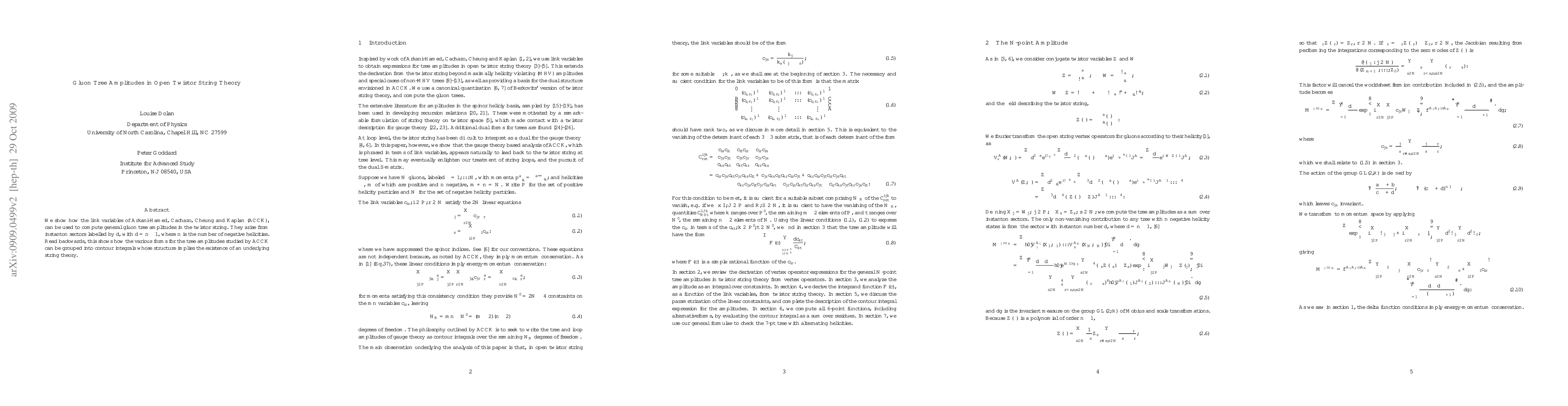 This paper demonstrates the use of ACCK link variables to compute gluon tree amplitudes in twistor string theory, revealing that these amplitudes emerge from instanton sectors labeled by d, where d=n-1 (n being the number of negative helicities). This approach implies the existence of an underlying string theory structure.