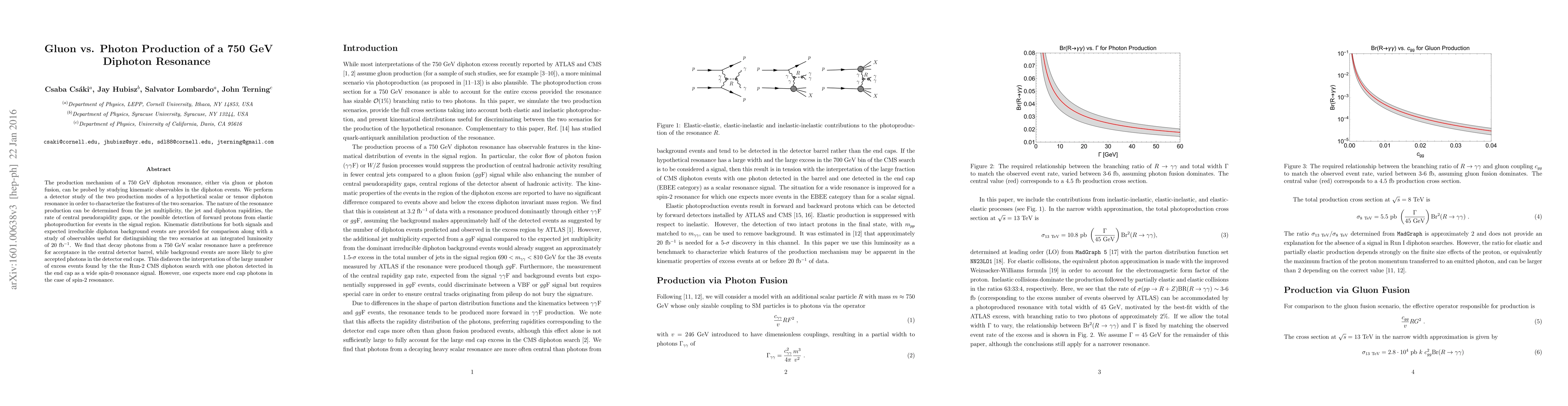 This study compares the production mechanisms of a 750 GeV diphoton resonance through gluon vs. photon fusion, using kinematic observables to distinguish between them. It finds that scalar resonances prefer central detector acceptance, while spin-2 resonances are more likely to produce photons in the detector's end caps.