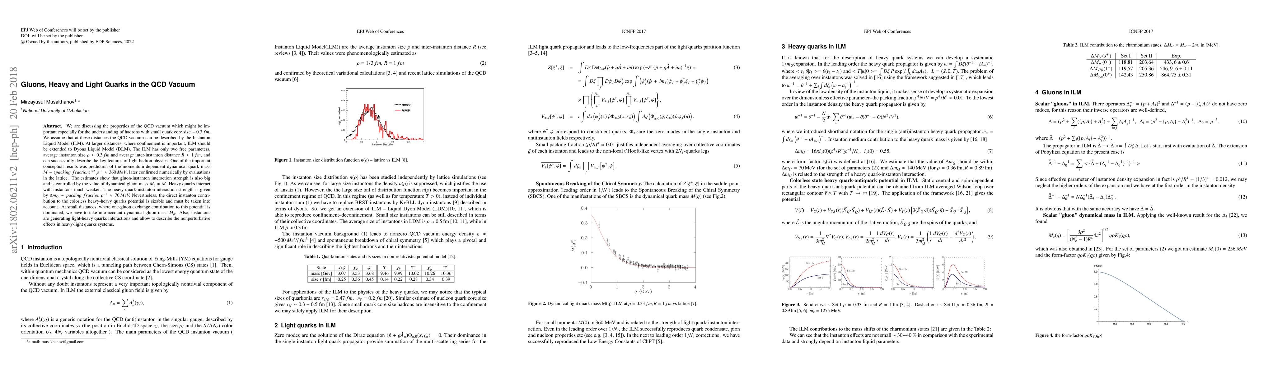 This paper explores the properties of the QCD vacuum using the Instanton Liquid Model (ILM) and extends it to the Dyons Liquid Model (DLM) for larger distances. It predicts a momentum-dependent dynamical quark mass and significant gluon-instanton interaction strength, while heavy quarks interact much weaker with instantons.