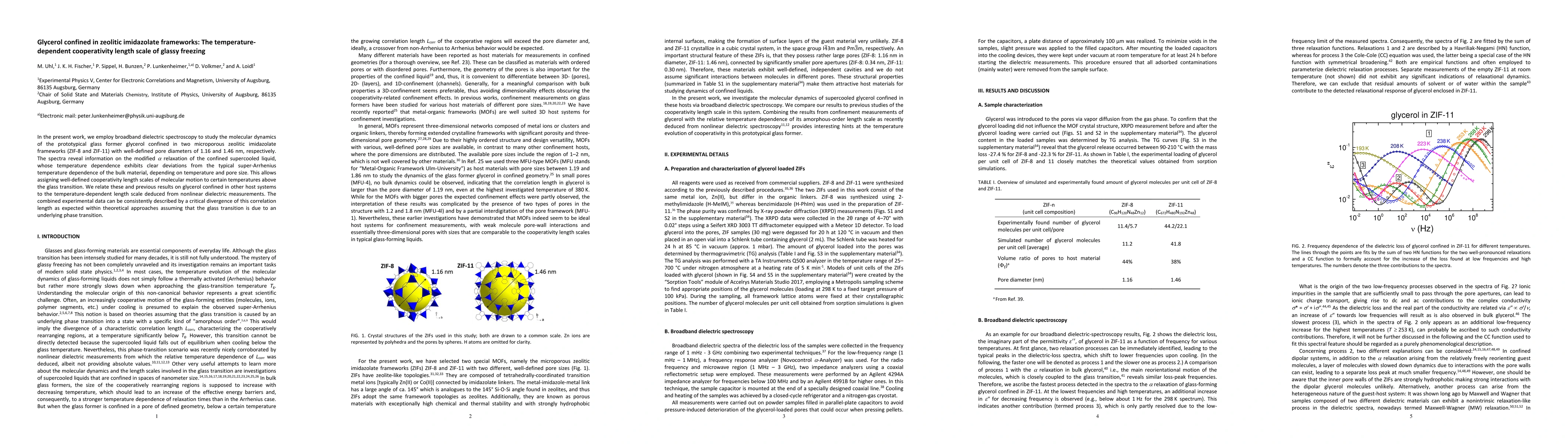 This study uses broadband dielectric spectroscopy to investigate glycerol's dynamics in zeolitic imidazolate frameworks (ZIF-8 and ZIF-11), revealing modified alpha relaxation and temperature-dependent cooperativity length scales above the glass transition. The findings suggest a critical divergence in correlation length, supporting theories of glass transition as an underlying phase transition.