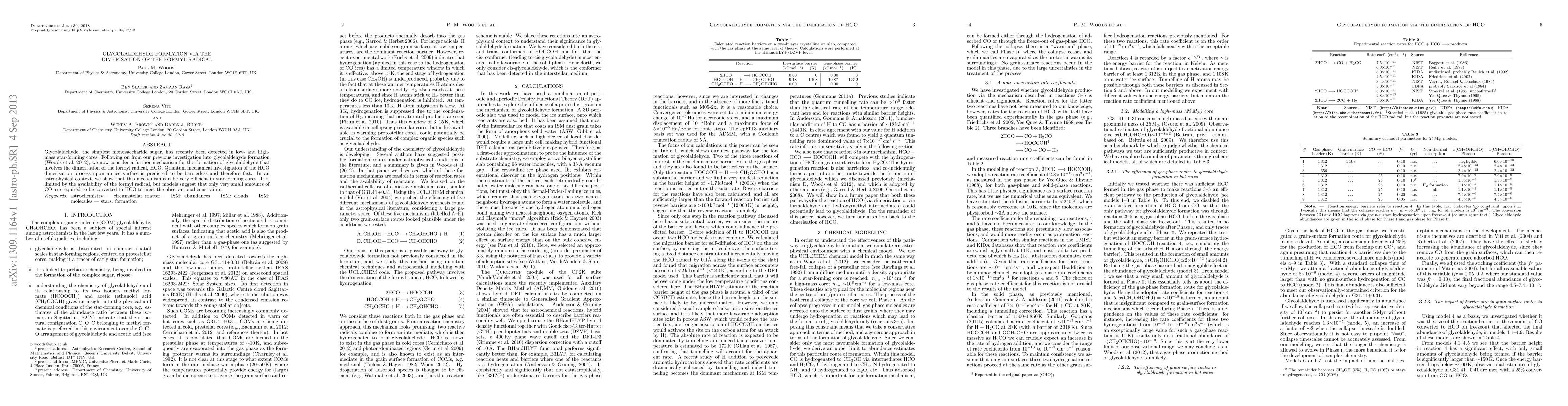 Glycolaldehyde, the simplest monosaccharide sugar, has recently been detected in low- and high-mass star-forming cores. Following on from our previous investigation into glycolaldehyde formation (Woods et al. 2012, ApJ, 750, 19), we now consider a further mechanism for the formation of glycolaldehyde that involves the dimerisation of the formyl radical, HCO. Quantum mechanical investigation of the HCO dimerisation process upon an ice surface is predicted to be barrierless and therefore fast. In an astrophysical context, we show that this mechanism can be very efficient in star-forming cores. It is limited by the availability of the formyl radical, but models suggest that only very small amounts of CO are required to be converted to HCO to meet the observational constraints.