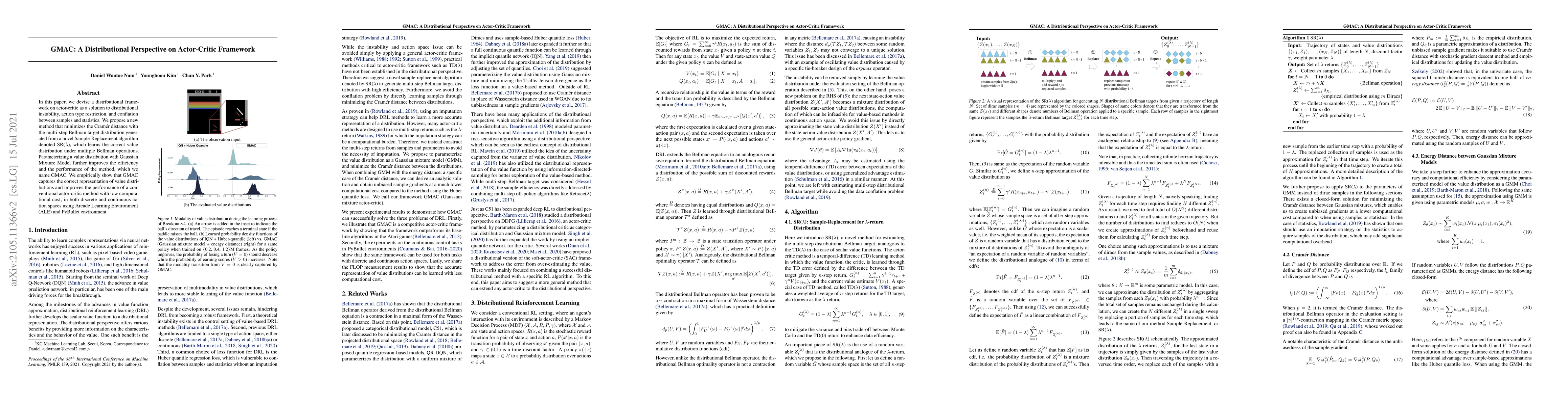 This paper introduces GMAC, a distributional actor-critic framework that addresses instability and conflation issues by minimizing the Cramér distance with a multi-step Bellman target distribution. It employs a Gaussian Mixture Model for improved efficiency and performance, demonstrating superior results in both discrete and continuous action spaces.