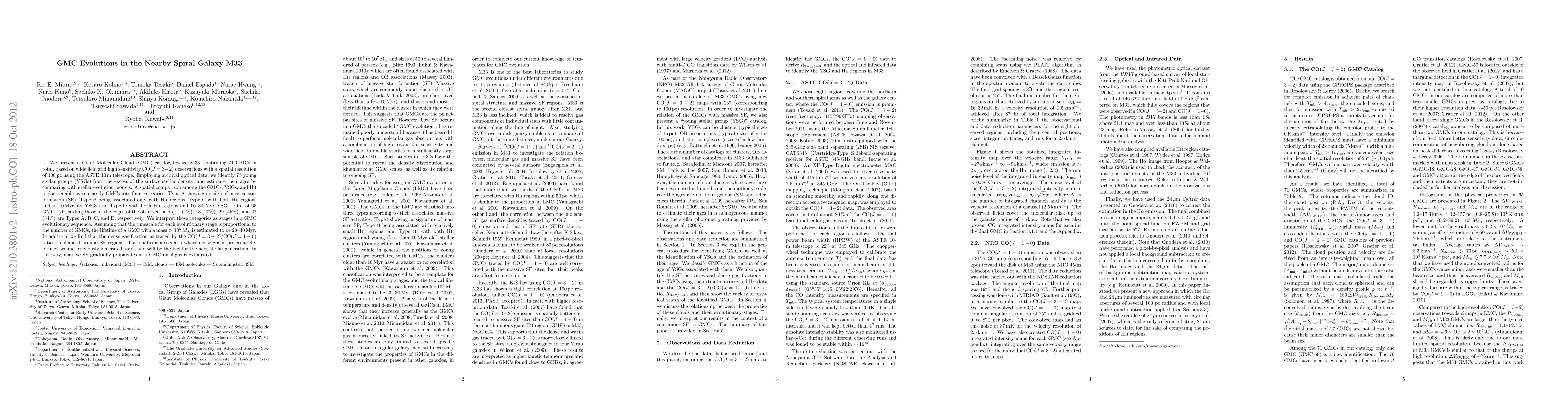 This study catalogs 71 Giant Molecular Clouds (GMCs) in M33 using CO(J=3-2) observations, identifying four GMC types based on their association with young stellar groups and HII regions. The findings suggest a GMC evolutionary sequence and estimate GMC lifetimes of 20-40 Myr, with dense gas preferentially forming around star-forming regions.