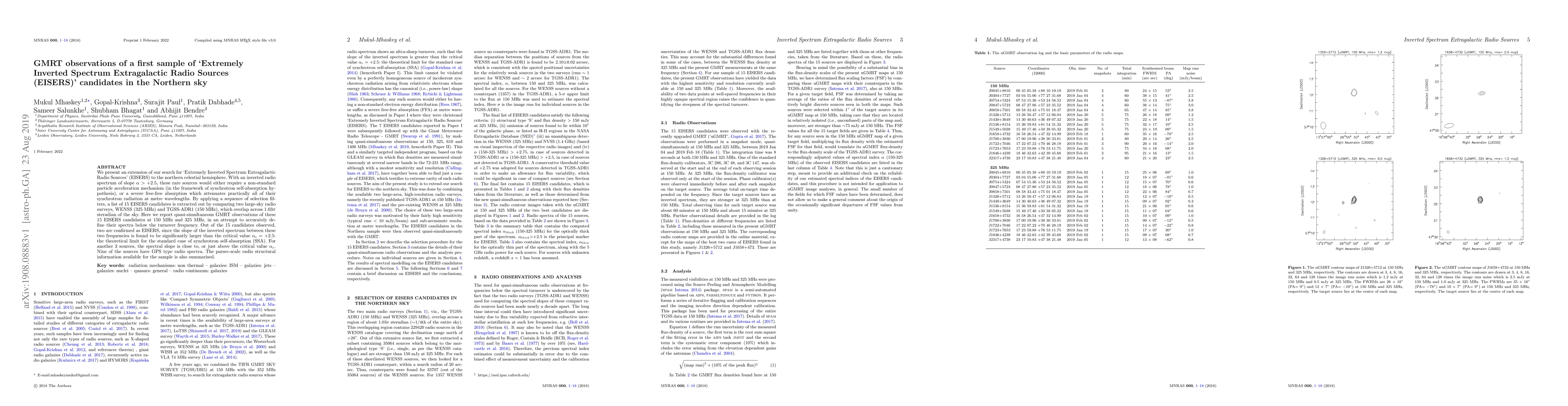 This paper reports GMRT observations of 15 Extremely Inverted Spectrum Extragalactic Radio Sources (EISERS) candidates in the northern sky, confirming two as true EISERS with spectra significantly inverted beyond the critical value. The study uses radio surveys at 325 MHz and 150 MHz to identify and characterize these rare sources.