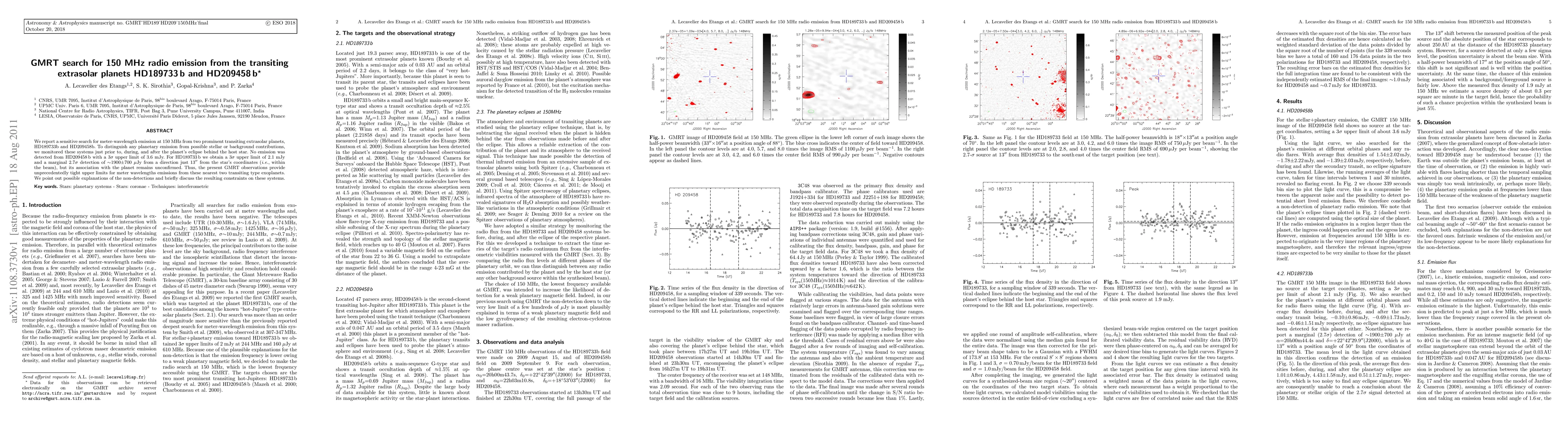 Researchers used the GMRT to search for radio emission from two transiting exoplanets, finding no detectable signal but setting tight upper limits on meter-wavelength emissions.