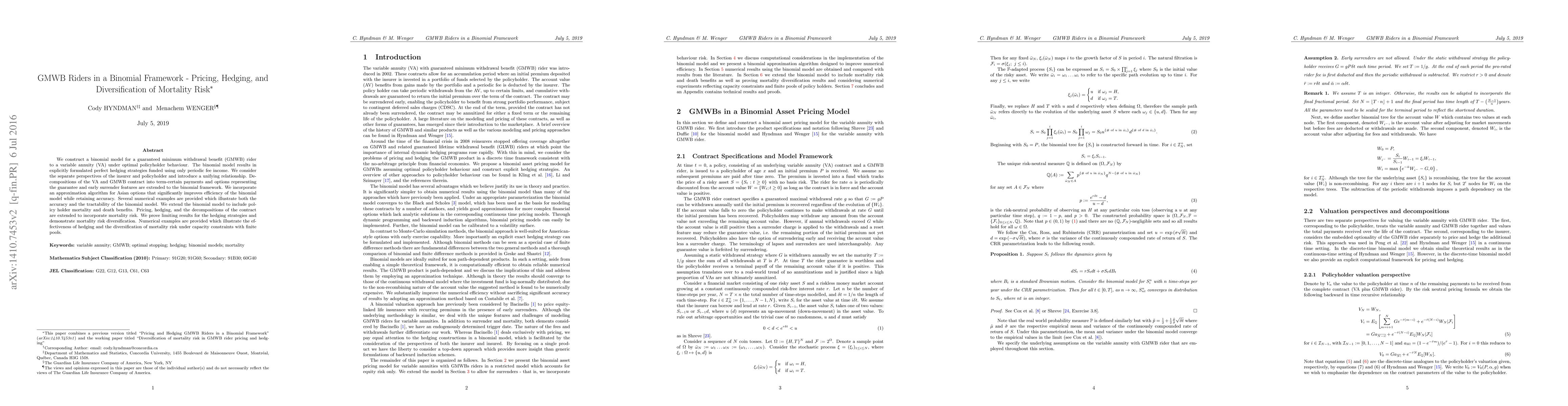 This paper constructs a binomial model for pricing and hedging a guaranteed minimum withdrawal benefit (GMWB) rider in variable annuities, incorporating mortality risk. It provides efficient hedging strategies and demonstrates mortality risk diversification through numerical examples.